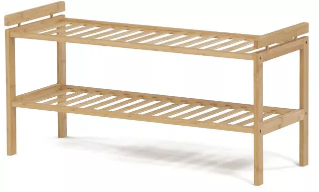 Botník z masivního bambusu v přírodním odstínu představuje praktické a elegantní řešení pro uskladnění obuvi v každé domácnosti. Díky otevřené konstrukci s vodorovnými latěmi umožňuje volné proudění vzduchu, čímž napomáhá rychlému schnutí a větrání obuvi.
