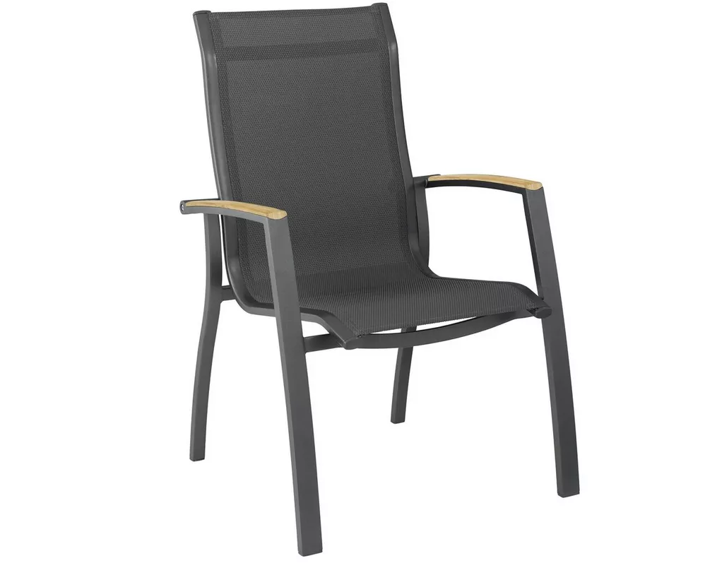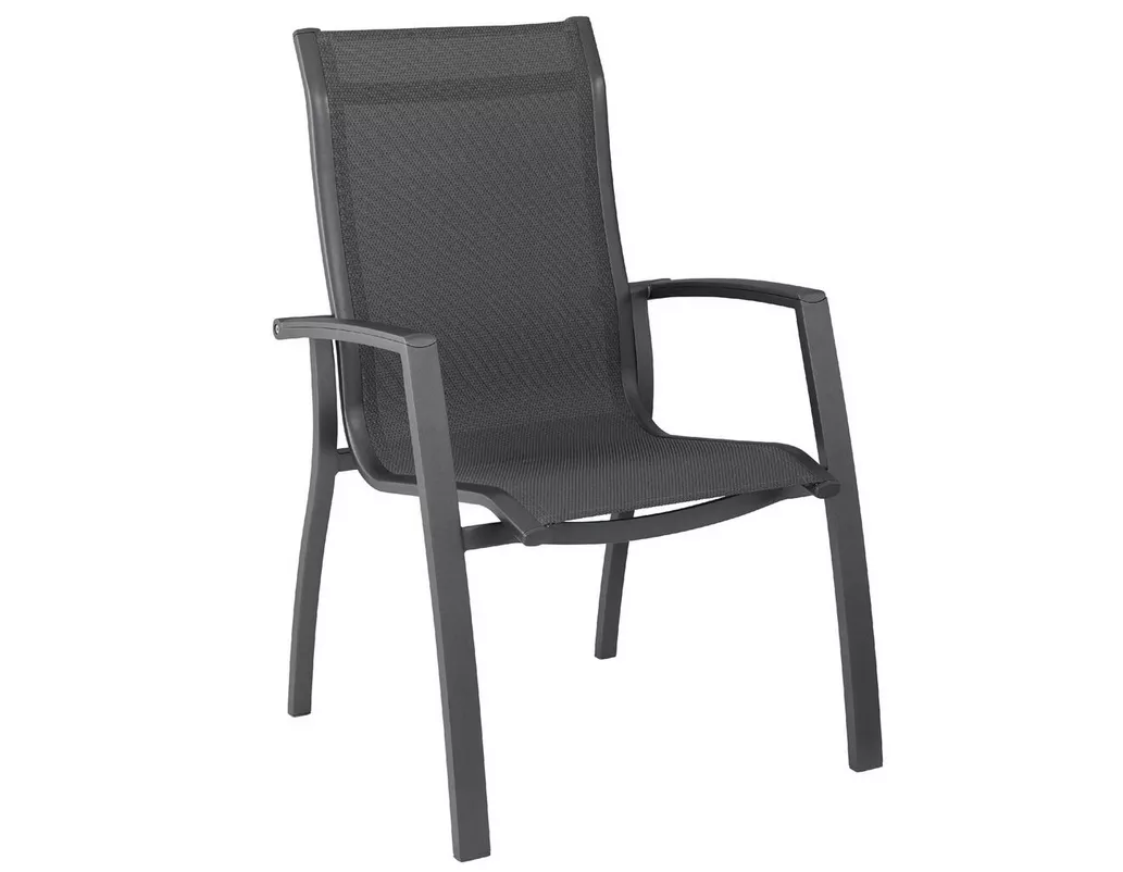 Křeslo je vyrobeno z extra lehké hliníkové konstrukce v elegantní antracitové barvě. Sedák i opěradlo tvoří kvalitní venkovní textilie, která je pevná, vzdušná, rychleschnoucí a dokonale odolává povětrnostním vlivům. Materiál se přizpůsobuje tvaru těla, díky čemuž poskytuje příjemné sezení bez nutnosti podušky.