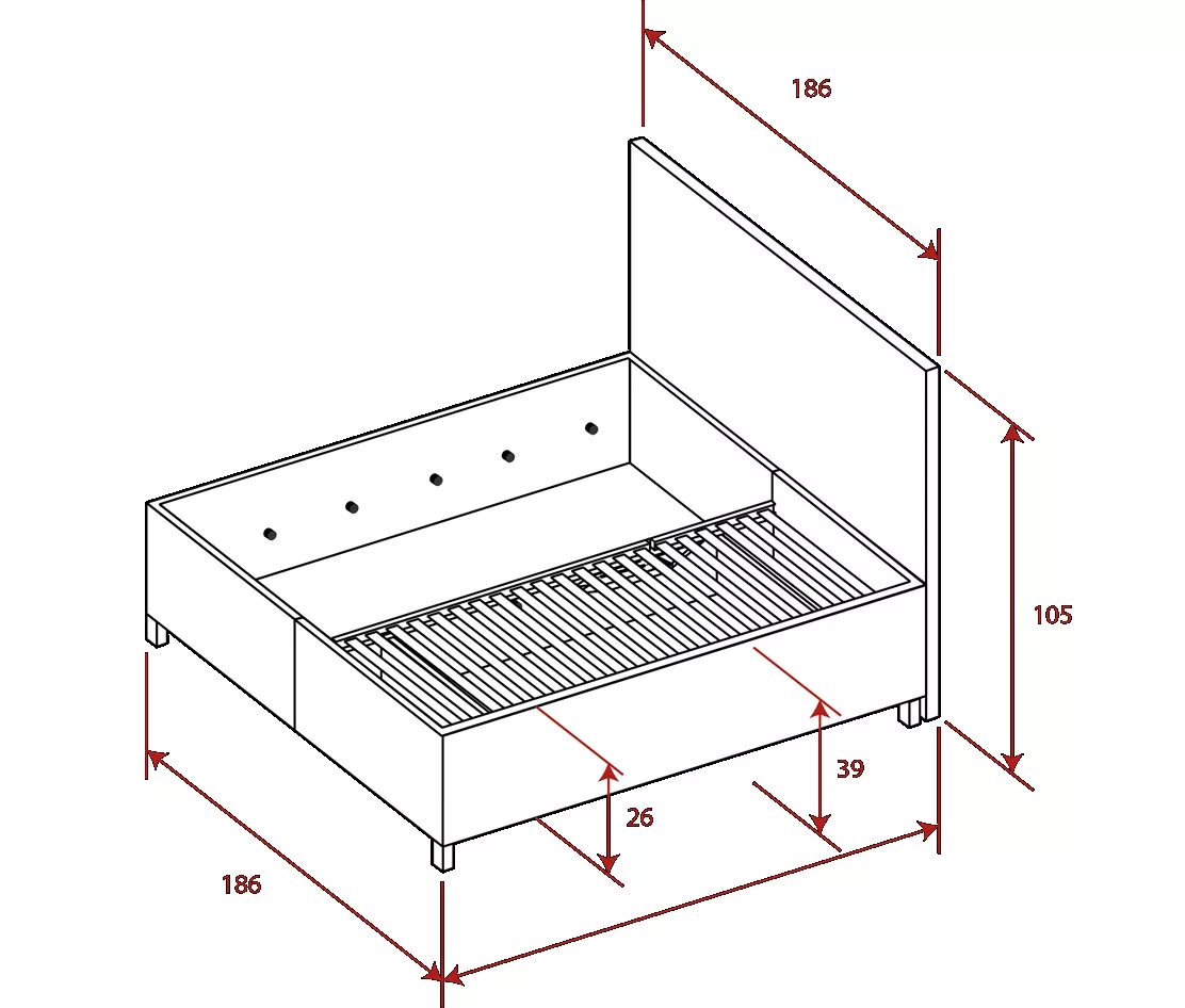 Postel je vhodná pro jakýkoli typ matrace - výška zvolené matrace zároveň určuje výslednou výšku ložné plochy. Vysoké nožičky udržují postel nad podlahou a umožňují správnou cirkulaci vzduchu pod postelí, čímž zároveň eliminují pocit chladu či průvanu.