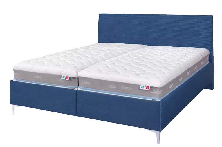 Základna je vybavena dvěma designovými nožičkami a dvěma kovovými vnitřními spojovacími nožičkami, které nejsou zvenku viditelné. Oba boxy jsou pevně přišroubované, což zabraňuje jejich posunu. Potahovou látku i styl čela si volíte podle svého vkusu, aby vzhled postele ladil s interiérem ložnice.