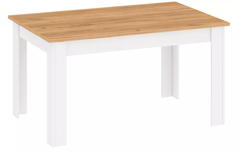 Jedálenský stůl LANZETTE S se stane přirozeným centrem rodinného života. Spojí celou rodinu u společných snídaní, obědů i večeří a díky praktické rozkládací funkci se snadno přizpůsobí návštěvám nebo slavnostním příležitostem. Horní deska v dekoru dub craft zlatý dodává stolu hřejivý vzhled, zatímco bílá barva alba podtrhuje jeho elegantní provensálský charakter.