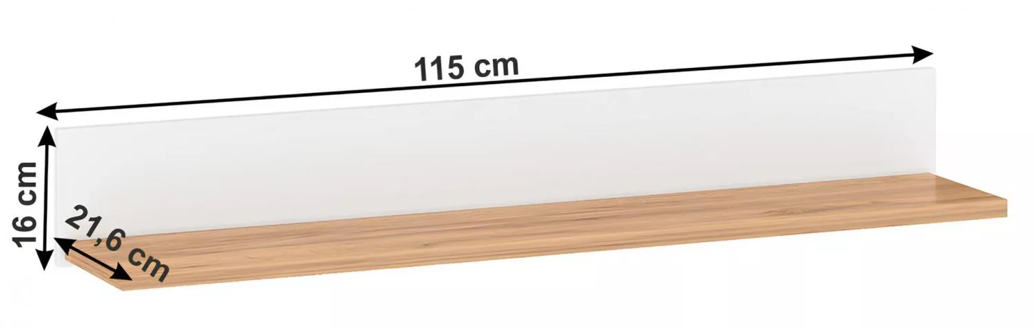 Díky kombinaci světlé bílé barvy a přírodního dekoru dubu působí police lehce, vzdušně a nadčasově. Je vyrobena z kvalitní laminované dřevotřísky s ABS hranami, které chrání povrch před poškozením a prodlužují životnost nábytku. Jednoduché provedení bez dvířek a zásuvek podtrhuje její univerzálnost a snadné začlenění do interiéru.