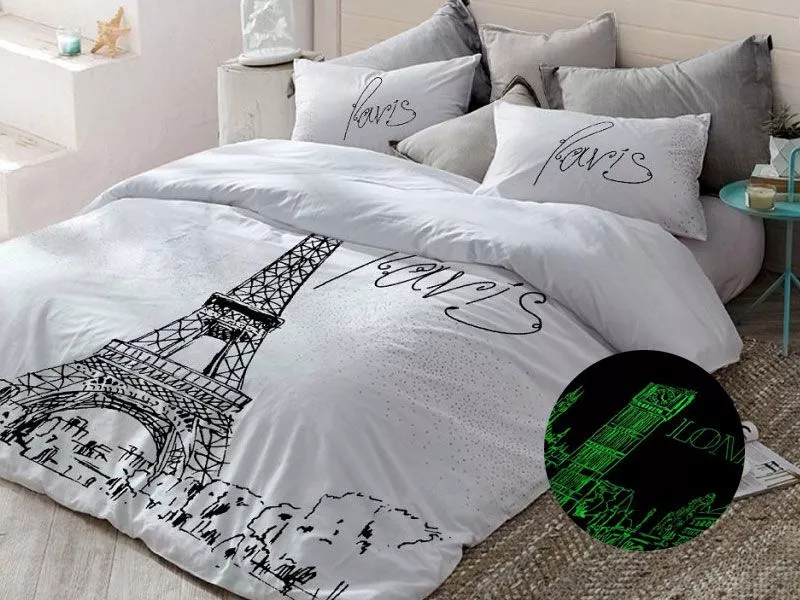 Dopřejte si příjemný spánek s bavlněným povlečením Den v Paříži, noc v Londýně. Během dne si užijte motiv Paříže, během tmy v noci se povlečení promění na Londýnský motiv.