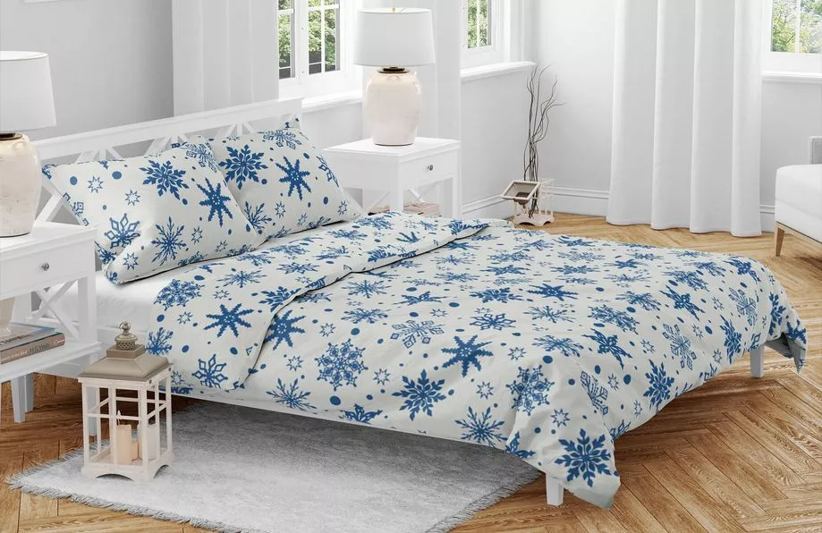 Bavlněné povlečení Vločky modrobílé přináší moderní vzhled, kvalitu a pohodlí, které oceníte každou noc.