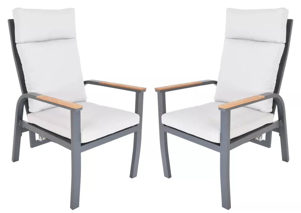 Luxusní sada ANNECY DUO nabízí dvě elegantní hliníková křesla v grafitovém provedení, která vynikají moderním designem, vysokým komfortem a prvotřídním zpracováním. Stylové teakové područky dodávají křeslům přírodní akcent a podtrhují jejich nadčasový vzhled.