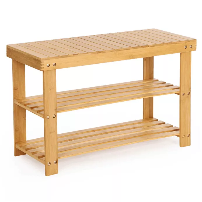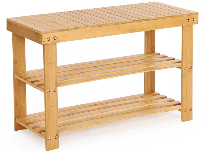 Praktický a elegantní botník z přírodního bambusu je ideálním řešením pro přehledné uložení obuvi v předsíni, chodbě nebo menším bytě. Otevřená konstrukce se dvěma policemi zajišťuje dobré větrání obuvi a pomáhá udržet svěží prostředí. Pevné provedení nabízí vysokou stabilitu a nosnost až 80 kg, přičemž hladký povrch je nenáročný na údržbu.