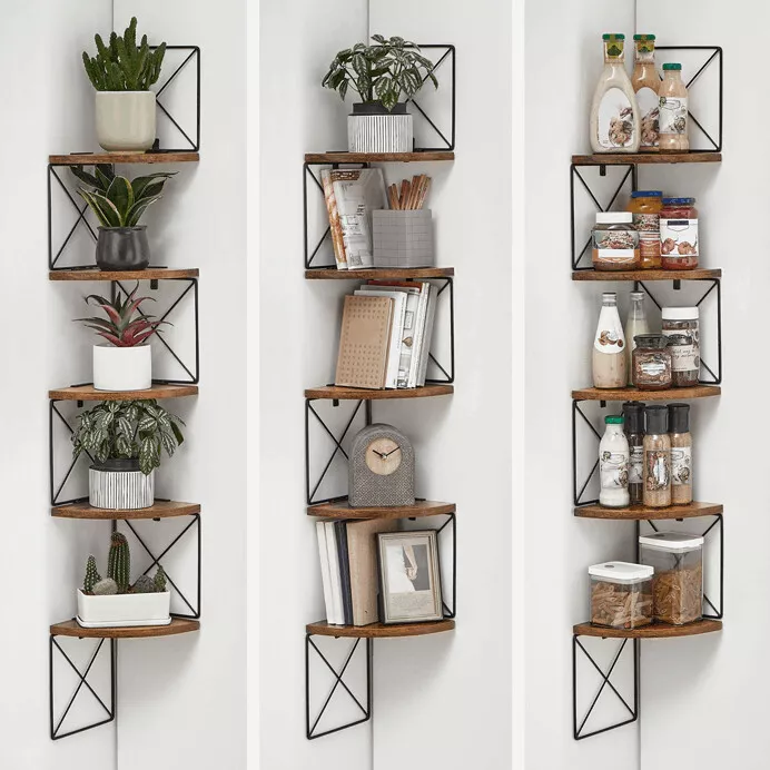 Praktická a designová polička, která promění nevyužitý roh v atraktivní úložný i dekorační prvek.