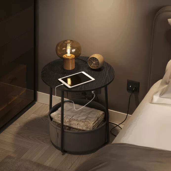 Ideální jako přístavný stolek k pohovce nebo křeslu ? s praktickým úložným prostorem a nabíjením vždy po ruce.