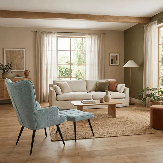 Elegantní relaxační křeslo s podnožkou nabízí ideální spojení pohodlí, funkčnosti a nadčasového designu. Čalounění z vodoodpudivé prémiové látky usnadňuje údržbu a zvyšuje odolnost při každodenním používání. Ergonomicky tvarované opěradlo s integrovanými područkami poskytuje příjemnou oporu při odpočinku, čtení i relaxaci. Součástí sestavy je samostatný taburet, který umožňuje pohodlné podepření nohou a zvyšuje celkový komfort sezení. Jemné prošití a zaoblené linie dodávají křeslu elegantní vzhled vhodný do moderních i klasických interiérů.