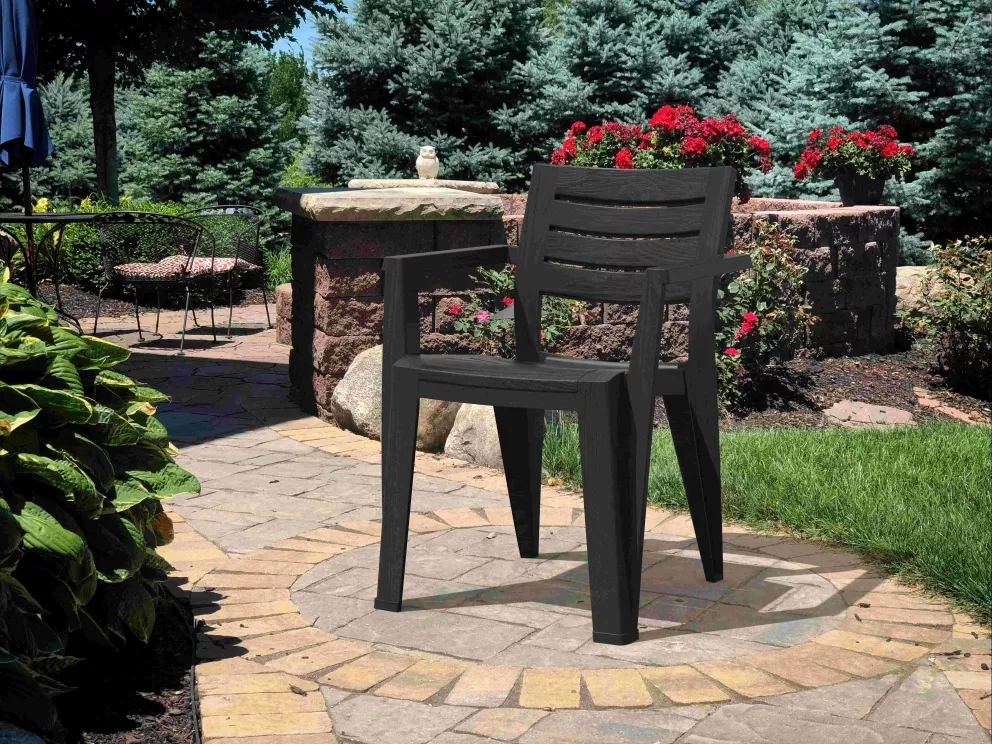 Zahradní křeslo LIDO v grafitovém provedení nabízí praktické a odolné řešení pro venkovní posezení. Díky imitaci dřeva působí přirozeně a elegantně, přitom si zachovává všechny výhody kvalitního plastu. Křeslo je lehké, stabilní a vhodné pro každodenní používání na zahradě, terase i balkonu. Použitý recyklovaný plast zajišťuje dlouhou životnost a snadnou údržbu bez nutnosti speciální péče. Odolnost vůči povětrnostním vlivům a UV záření umožňuje celoroční využití ve venkovním prostředí.