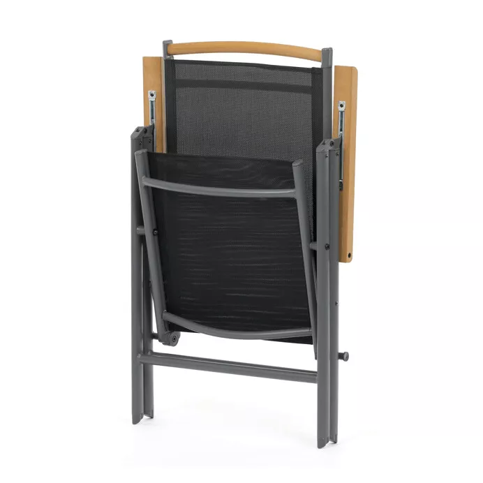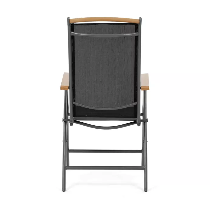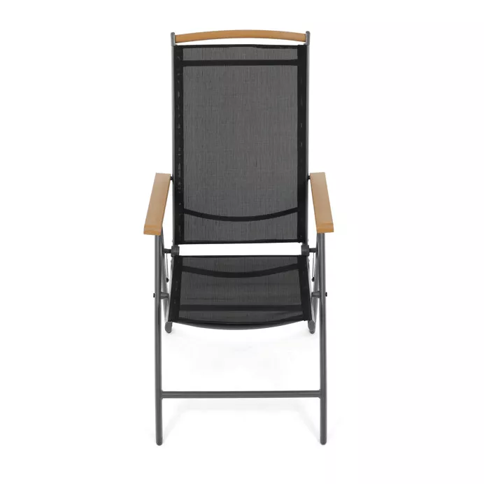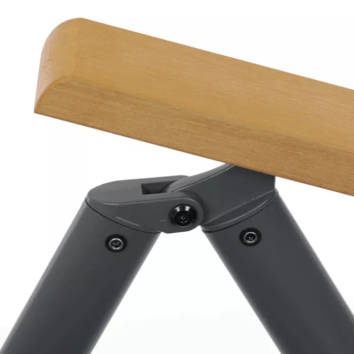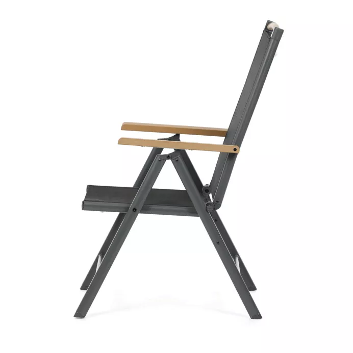 Zahradní sklápěcí židle s polohovatelným opěradlem je navržena pro pohodlný odpočinek na zahradě, terase i balkonu, kde oceníte možnost přizpůsobit si sezení podle aktuálních potřeb. Lehká, ale pevná hliníková konstrukce zajišťuje stabilitu a odolnost vůči venkovním vlivům, zatímco prodyšný textilní sedák a opěrák poskytují komfort i při delším posezení. Elegantním detailem jsou područky z polywoodu v přírodním odstínu, které židli dodávají příjemný vzhled a zvyšují pohodlí při používání. Díky skládacímu provedení je manipulace i skladování jednoduché a praktické.