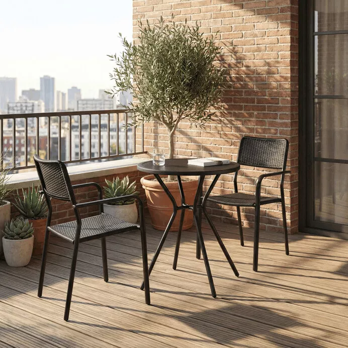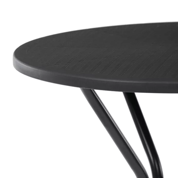 Zahradní stůl s kulatou deskou je praktickým a univerzálním řešením pro venkovní posezení na zahradě, terase i balkonu. Díky kompaktním rozměrům se snadno vejde i do menších prostor, přesto poskytuje dostatečnou plochu pro běžné stolování, odkládání nápojů nebo drobné zahradní aktivity. Plastová deska s jemnou strukturou je nenáročná na údržbu a dobře odolává povětrnostním vlivům, zatímco stabilní kovová podnož s práškovým lakem zajišťuje pevnost a dlouhou životnost při každodenním venkovním používání.