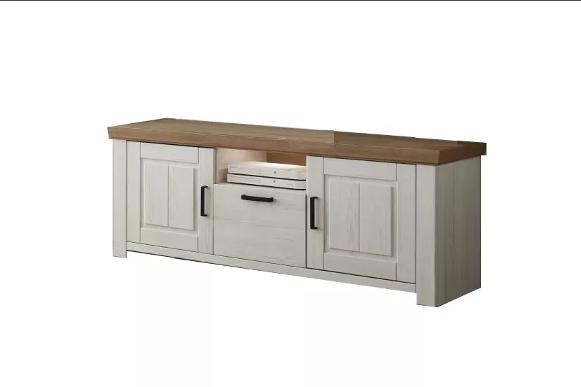 Televizní stolek Amram Typ 36 s čistým designem, který kombinuje uzavřený úložný prostor, praktickou zásuvku a otevřenou niku pro elektroniku nebo drobnosti. Díky rozměrům je vhodný pod televizi, do obývacího pokoje i do ložnice, kde pomůže udržet prostor přehledný. Dodává se již ve zmontovaném stavu.