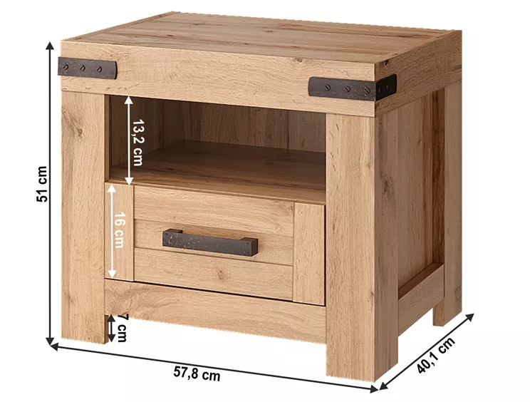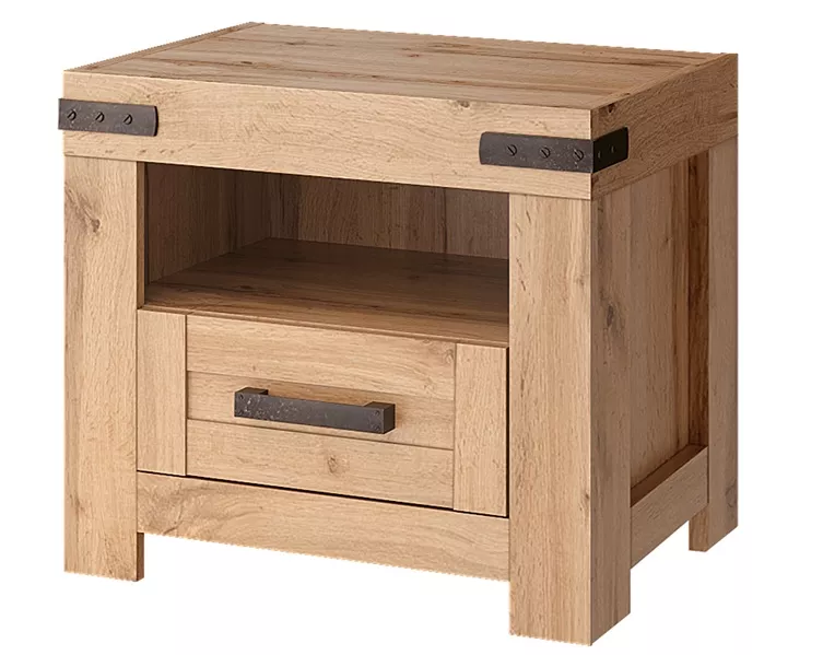 Noční stolek nabízí kombinovaný úložný prostor, který je ideální pro každodenní používání. Uzavřený šuplík poskytne místo pro uložení drobností, které chcete mít po ruce, ale zároveň mimo dohled, zatímco otevřená odkládací plocha je vhodná například pro knihu, mobilní telefon nebo budík. Korpus je vyroben z laminované dřevotřísky, čelní části z MDF, což přispívá k pevnosti a stabilitě celého kusu nábytku. Stolek stojí na nožičkách, které jej opticky odlehčují a usnadňují úklid pod nábytkem. Dodáván je v demontovaném stavu.