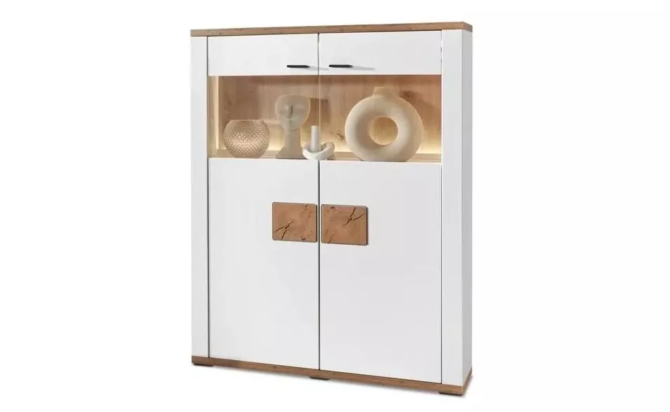 Praktická prosklená skříňka Milena Typ 05, která se hodí jako doplněk do obýváku, jídelny i pracovny. Díky proskleným dvířkům je ideální pro vystavení dekorací, skleniček nebo knih, zároveň ale působí lehce a nezabere zbytečně moc místa. Vnitřní mezistěna a police pomohou obsah přehledně rozdělit, takže vše vypadá upraveně i bez složitého aranžování.