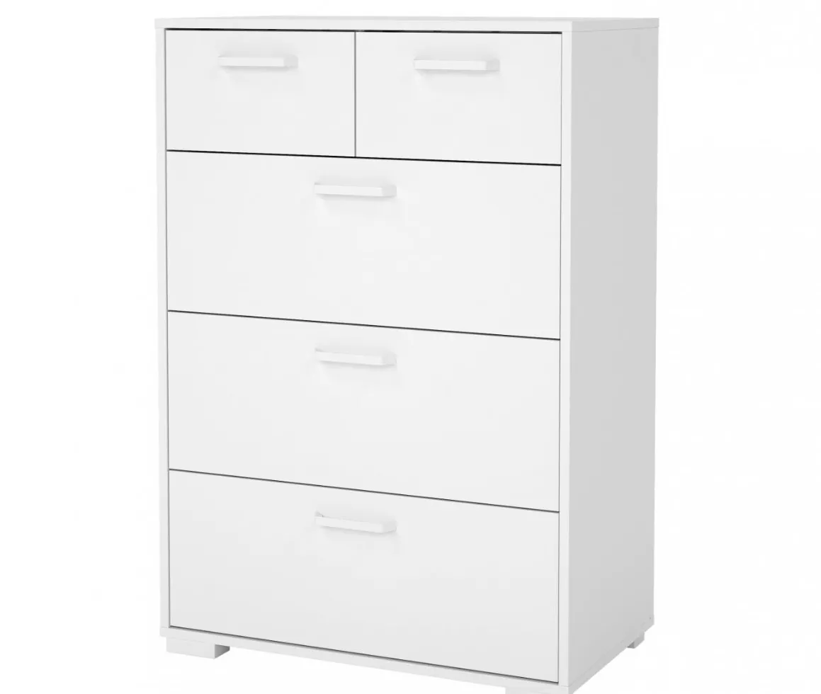 Komoda Selina 704 v dekoru jackson hickory je skvělá volba, když chcete do interiéru dostat teplejší dřevěný tón, ale zároveň si zachovat čistý, moderní vzhled. Praktické členění na 3 větší a 2 menší zásuvky pomůže udělat pořádek v drobnostech i větších věcech - využijete ji v ložnici na prádlo, v předsíni na doplňky i v obýváku na vše, co nechcete mít stále na očích.