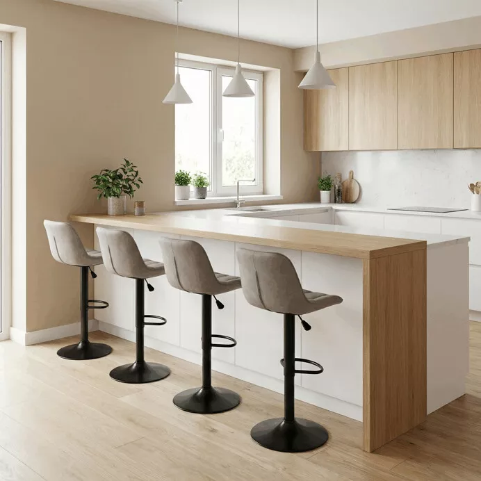 Barová židle AUB-V3066 je ideální volbou pro moderní kuchyně, jídelny i domácí bary. Kombinuje elegantní vzhled s praktickými funkcemi, které zajišťují pohodlné a flexibilní sezení. Skvěle se hodí k barovým pultům i kuchyňským ostrůvkům.