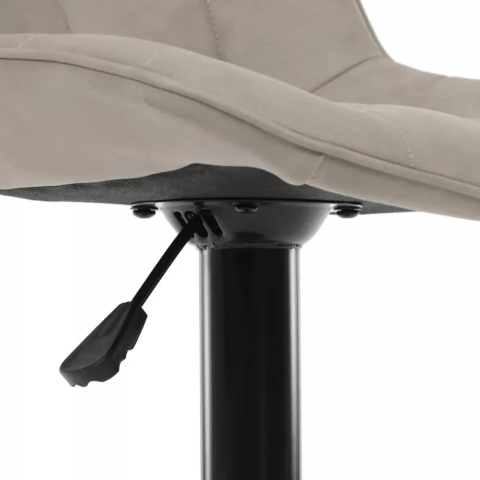Stabilitu zajišťuje pevná kovová podnož v černé barvě s centrální konstrukcí a širokou kruhovou základnou. Součástí je také praktická opěrka nohou, která zvyšuje pohodlí při sezení. Díky výškově nastavitelnému plynovému pístu lze snadno přizpůsobit výšku sedu podle potřeby. Židle je navíc otočná o 360°, což umožňuje volný pohyb bez nutnosti posouvání celé konstrukce.