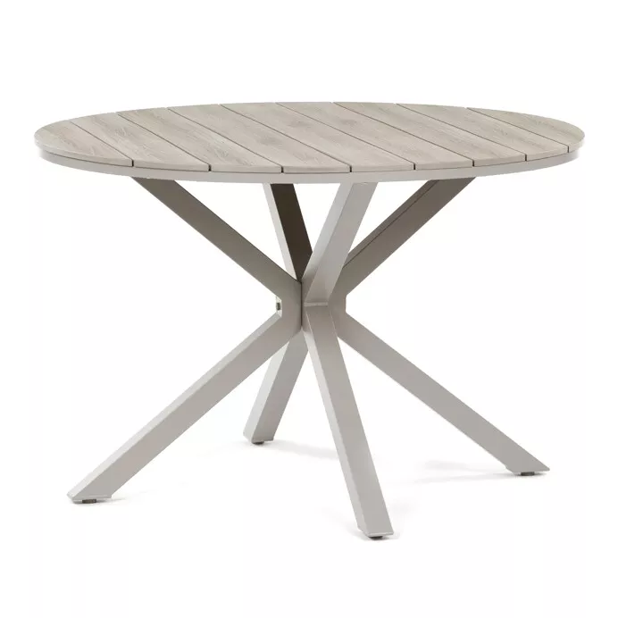Zahradní stůl o rozměrech 110 × 110 cm představuje ideální spojení moderního designu, odolných materiálů a praktického využití. Díky kruhové desce v dekoru divoký dub působí přirozeně a elegantně, zatímco béžové nebo šedé provedení dodává celku svěží a nadčasový vzhled. Skvěle zapadne na terasu, zahradu i do pergoly.