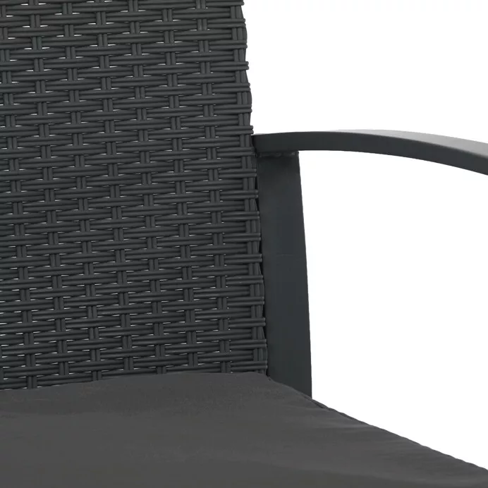 Set tvoří dvě pohodlná křesla a praktický stolek. Křesla jsou vybavena polstrovanými sedáky s pěnovou výplní o tloušťce 6 cm, které zajišťují příjemné posezení. Potahy jsou vyrobeny ze 100% polyesteru v šedém odstínu a ladí s celkovým designem sestavy. Ergonomicky tvarované opěradlo a područky zvyšují komfort při delším sezení.