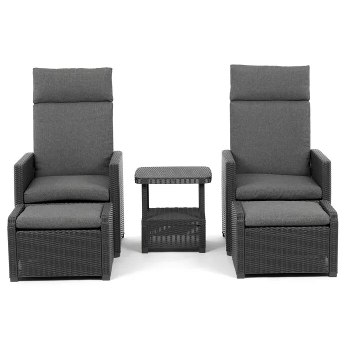 Zahradní set AZS-L2665 s polohovacími křesly - pohodlí na maximumModerní zahradní set v šedém provedení kombinuje pevný kovový rám s ...
