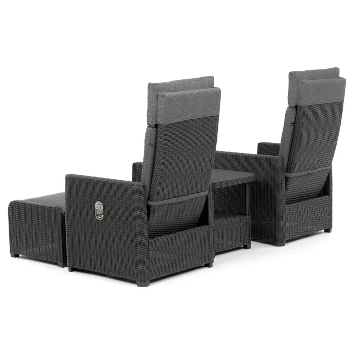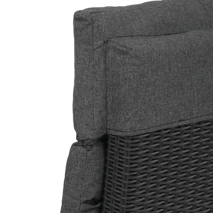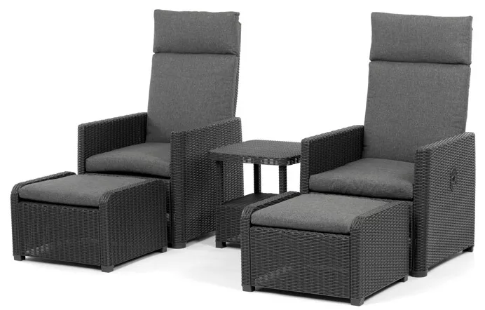 Hlavní předností setu jsou dvě polohovací křesla s nastavitelným sklonem opěradla. Každý si tak může zvolit ideální pozici pro posezení, čtení nebo odpočinek. Křesla jsou doplněna pohodlnými polstry s pěnovou výplní (sedák 6?8 cm, opěrák 8 cm) a potahem ze 100% polyesteru s voděodolnou úpravou.