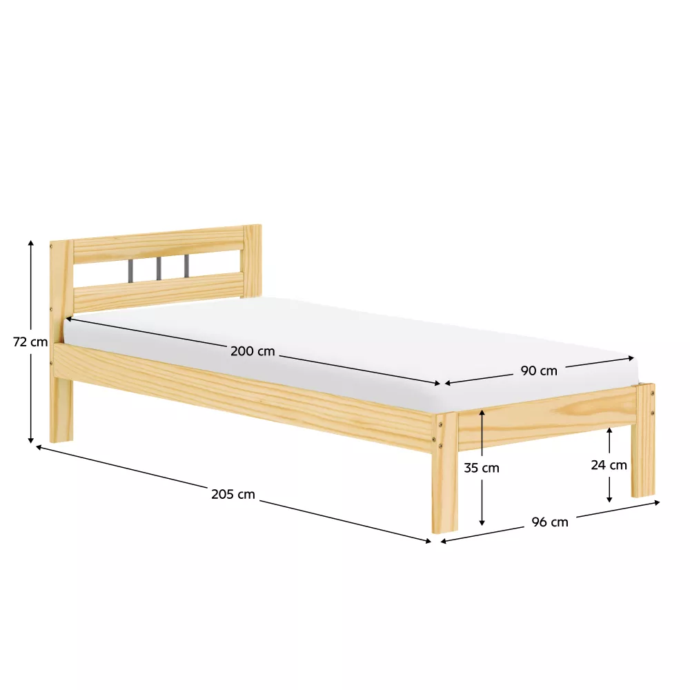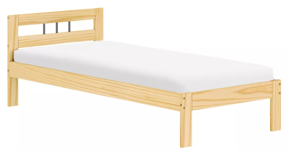 Jednoduché linie v přírodní barvě podtrhují přirozenou kresbu dřeva a umožňují snadné kombinování s dalším nábytkem. Konstrukce o tloušťce 2,6 cm zajišťuje stabilitu a dlouhou životnost. Postel stojí na nožičkách o výšce 35 cm, které jí dodávají lehkost a zároveň usnadňují úklid pod lůžkem.