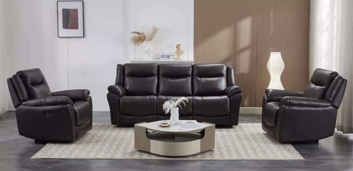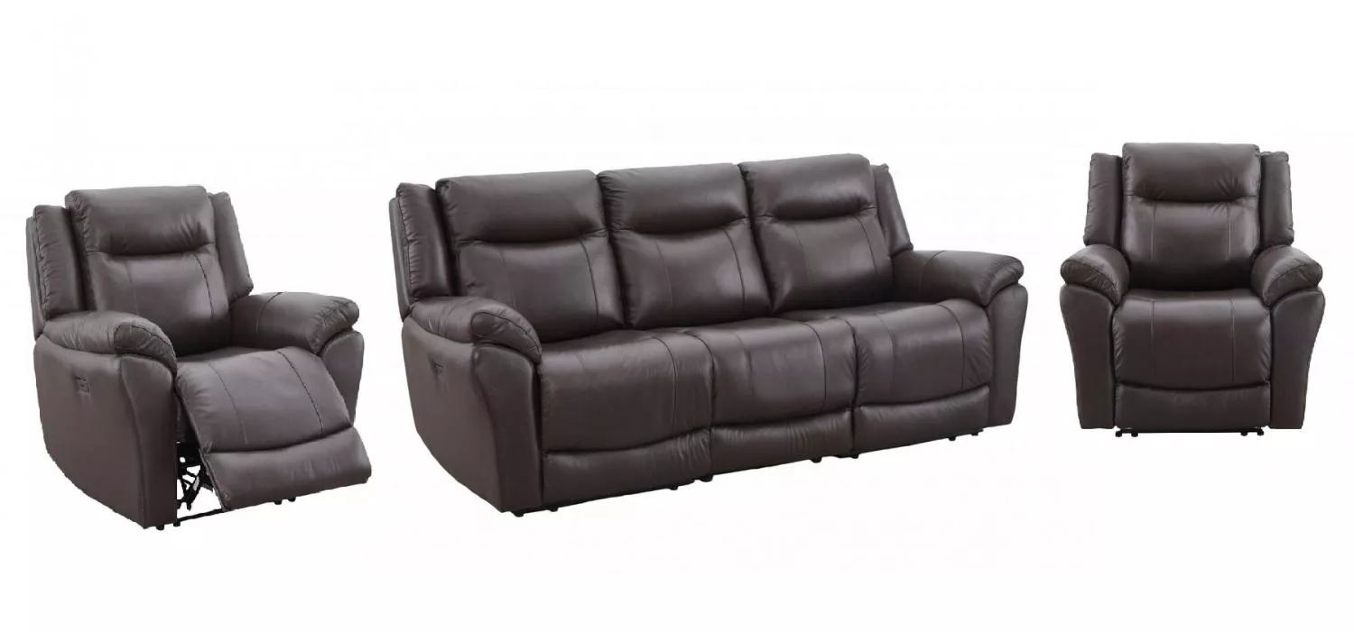 Sestava se skládá z trojsedu, kde jsou elektricky polohovatelná obě boční místa (prostřední sedák je bez polohování), a ze dvou samostatných křesel s elektrickým relaxem. Každý si tak najde svůj prostor i svou oblíbenou polohu, aniž byste museli dělat kompromisy.