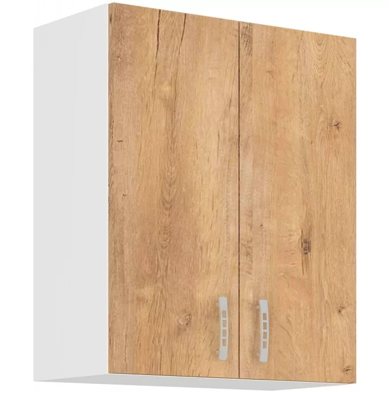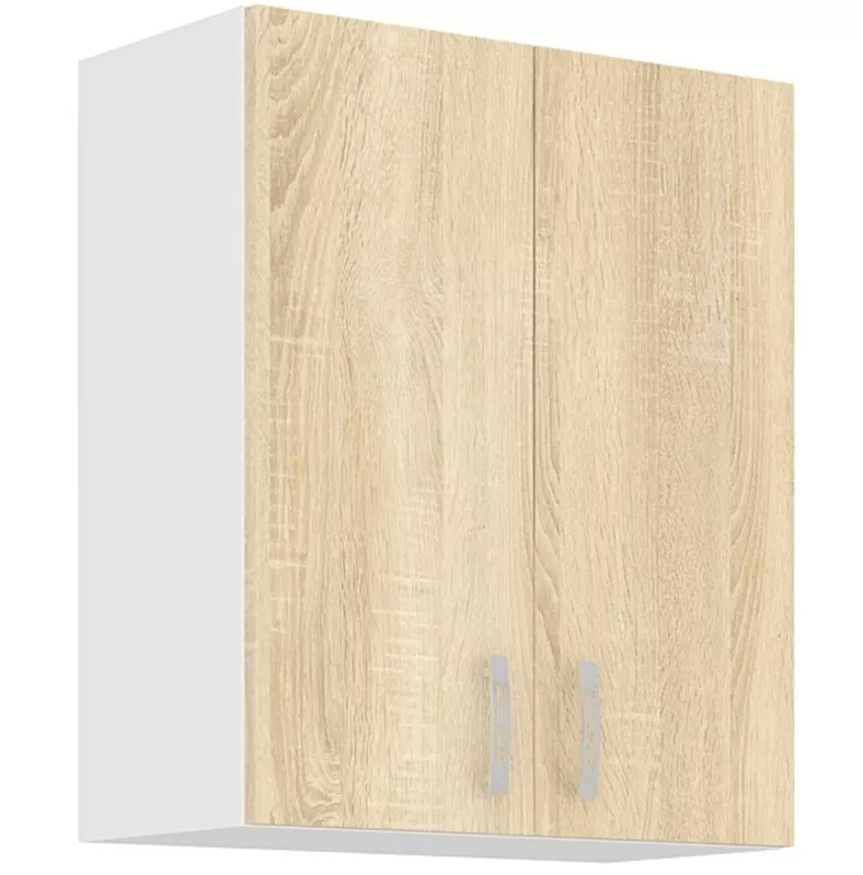 Horní kuchyňská skříňka Sally 60-g-72-2f je praktický prvek pro sestavení kuchyně na míru. Má bílý korpus z lamina o tloušťce 16 mm, který působí čistě a svěže, a dvířka v dekoru dub sonoma, díky kterým kuchyň získá příjemně teplý vzhled. Skříňku snadno sladíte s dalšími díly řady Sally a poskládáte si sestavu přesně podle prostoru ? od menších kuchyní až po větší kuchyňské linky.