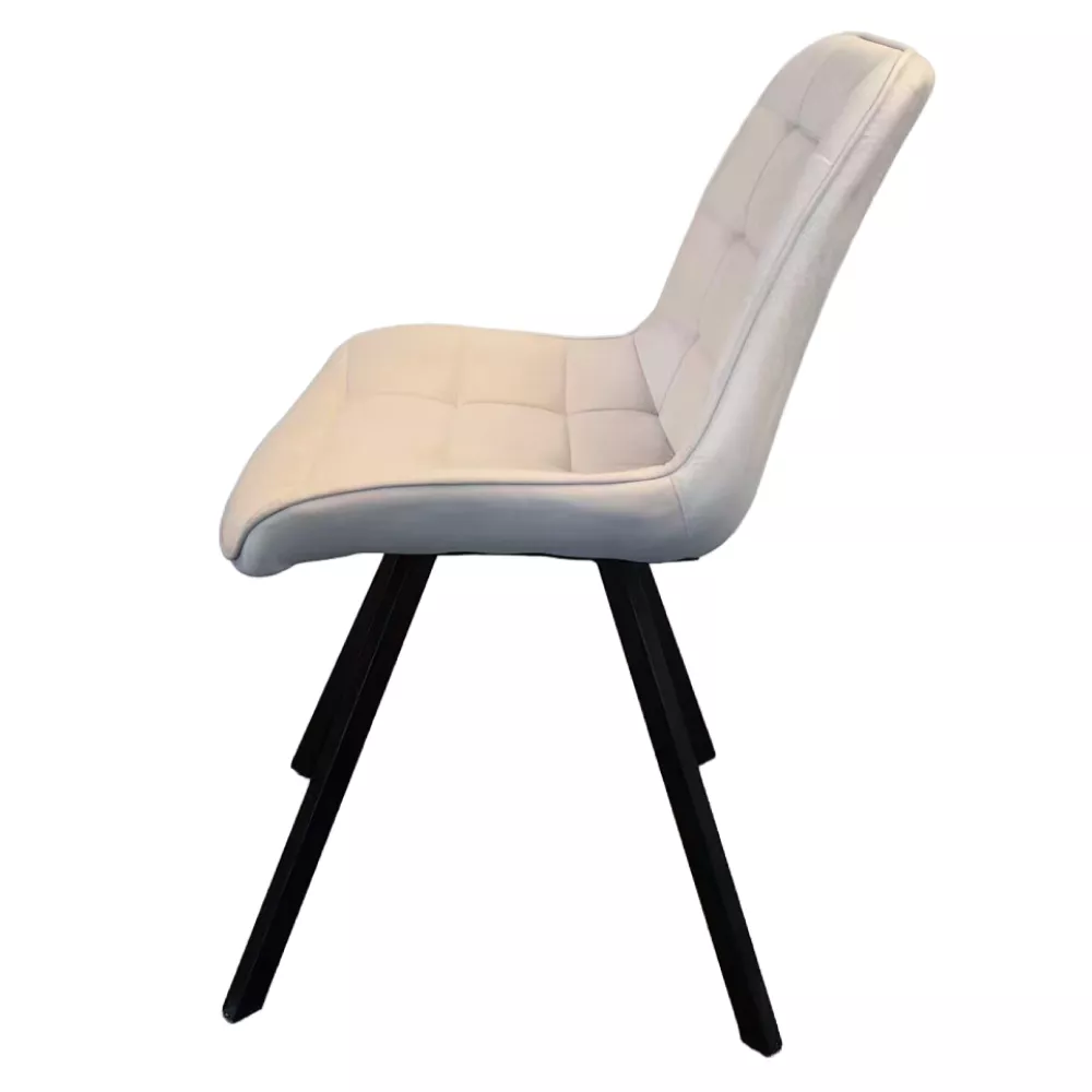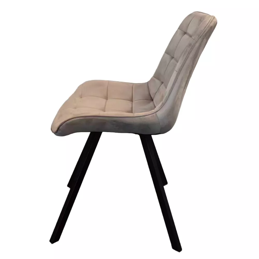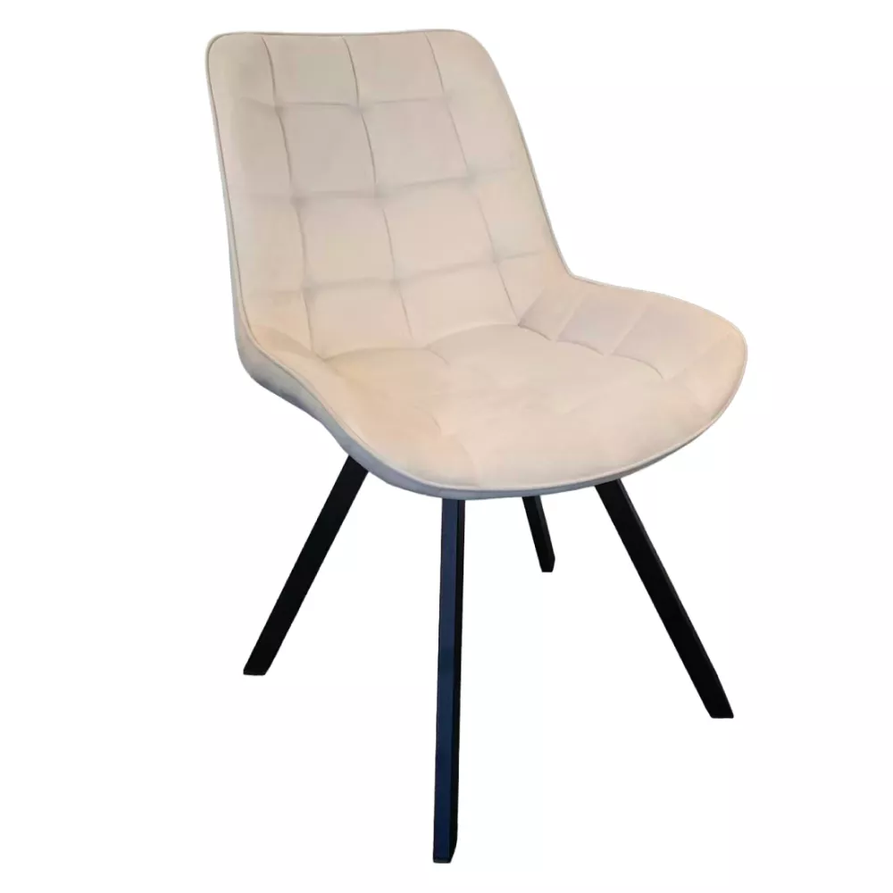 Jídelní židle SAMIRA spojuje moderní design, dekorativní prošívání a vysoký komfort sezení. Díky elegantní kombinaci béžové Velvet látky a černých kovových nohou se stane výrazným, ale zároveň nadčasovým prvkem každé jídelny, kuchyně i obývacího prostoru.