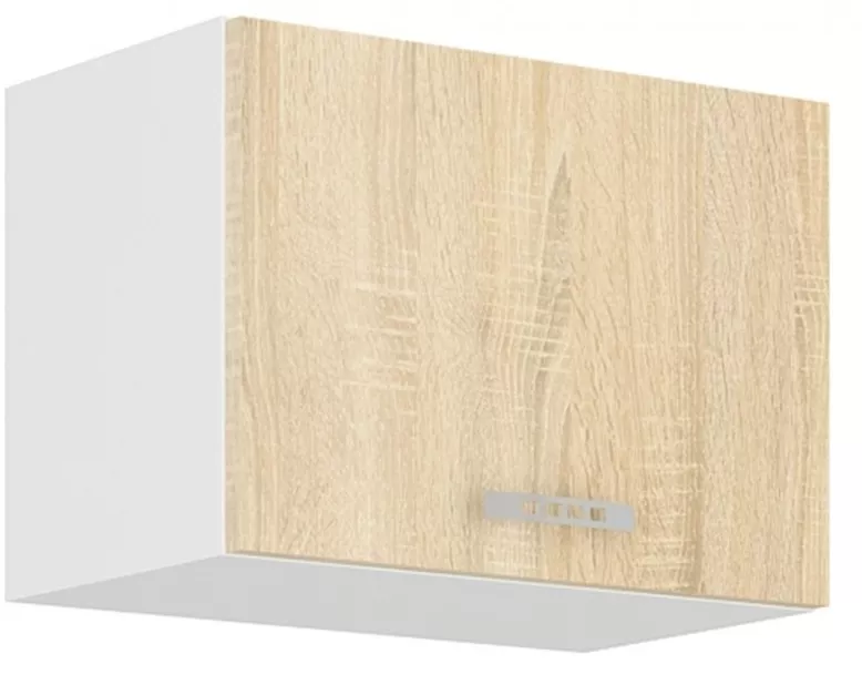 Horní kuchyňská skříňka Sally 50-ok-40-1f je praktický doplněk do kuchyňské sestavy Sally, ideální pro využití prostoru nad pracovní deskou. Bílý korpus z lamina (16 mm) působí čistě a světle, zatímco dvířka v dekoru dub sonoma dodají kuchyni příjemně teplý vzhled. Skříňku snadno zkombinujete s dalšími prvky řady Sally a poskládáte si kuchyň přesně podle prostoru ? od menších linek až po větší sestavy.