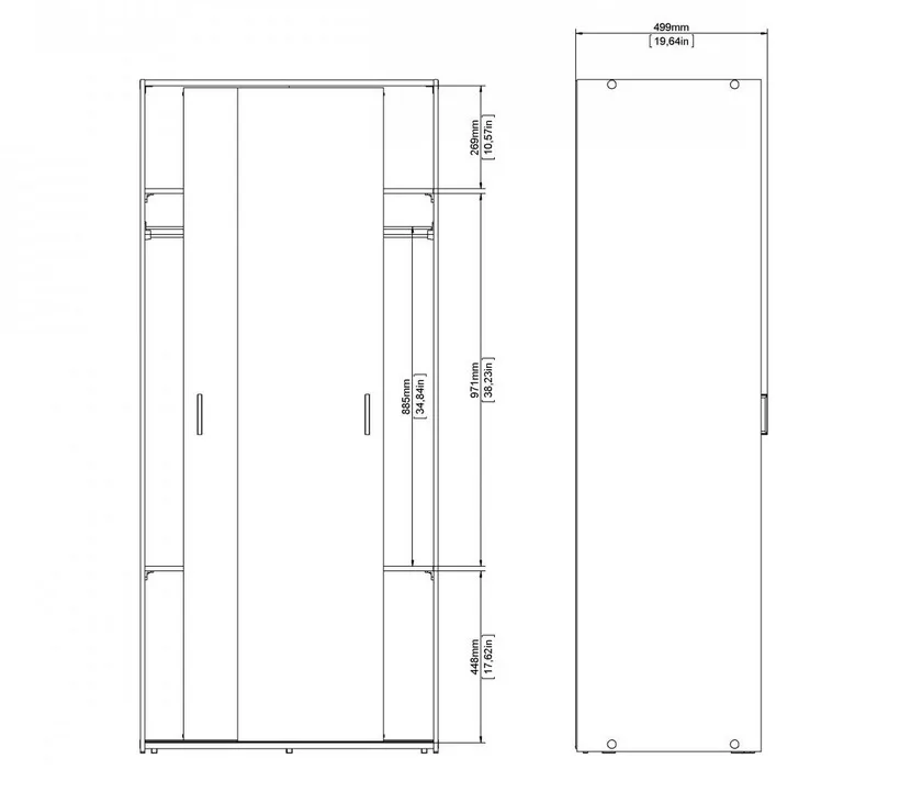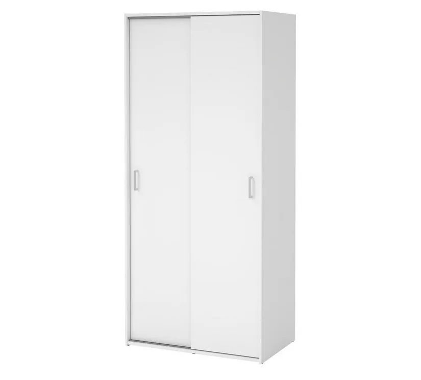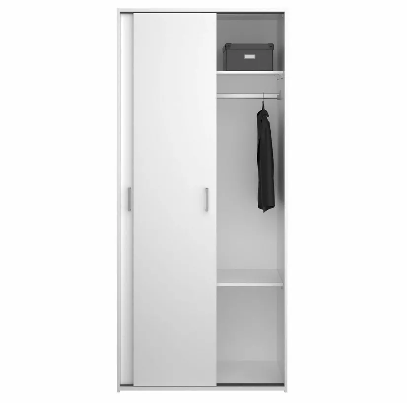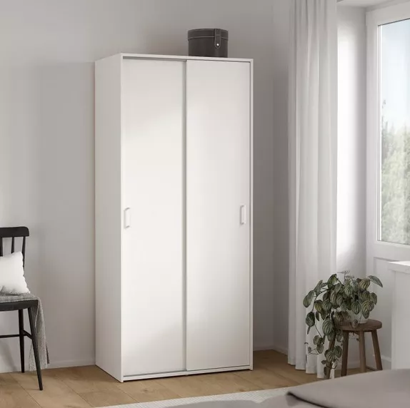 Skříň Sid 388 je praktická šatní skříň s posuvnými dveřmi, která se hodí do ložnice, předsíně i studentského pokoje ? všude tam, kde chcete ušetřit místo před skříní a zároveň mít úložný prostor dobře zorganizovaný. Díky šířce 78 cm působí kompaktně, ale uvnitř nabídne chytré členění: šatní tyč na zavěšení oblečení a dvě velké police na složené věci, krabice nebo doplňky. Bílé provedení interiér opticky prosvětlí a snadno se kombinuje s dalším nábytkem.