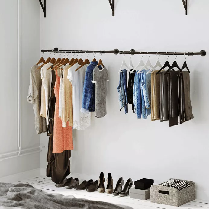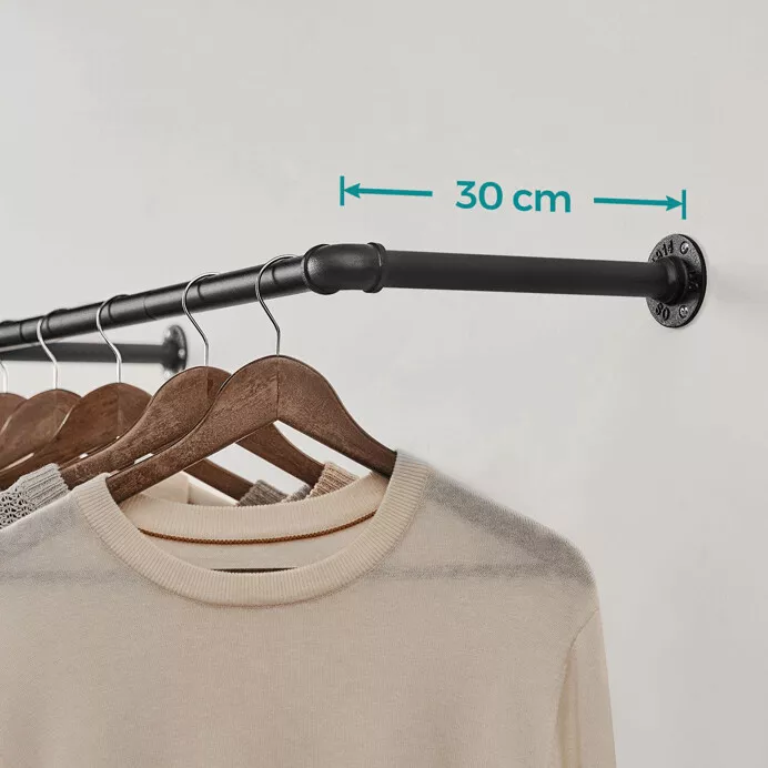 Každý věšák je tvořen samostatnou tyčí s pevnými úchyty pro bezpečné připevnění ke stěně. Montáž na stěnu šetří místo a umožňuje efektivní využití prostoru v předsíni, šatně, ložnici i komerčních prostorách.