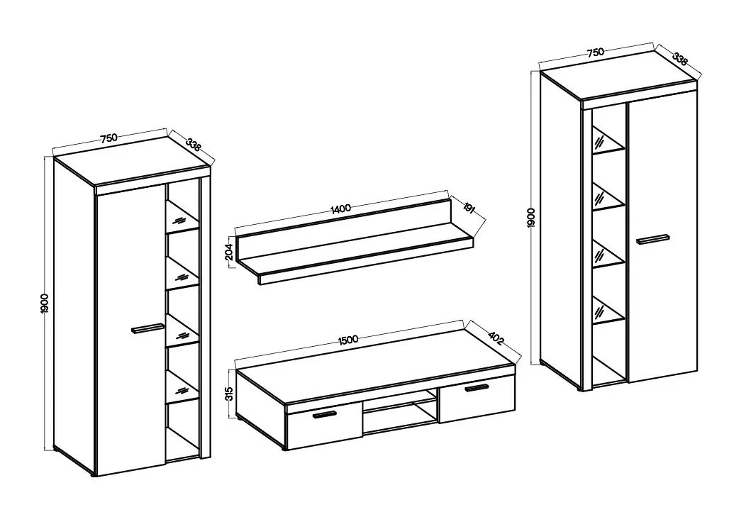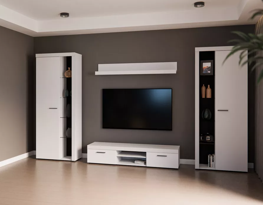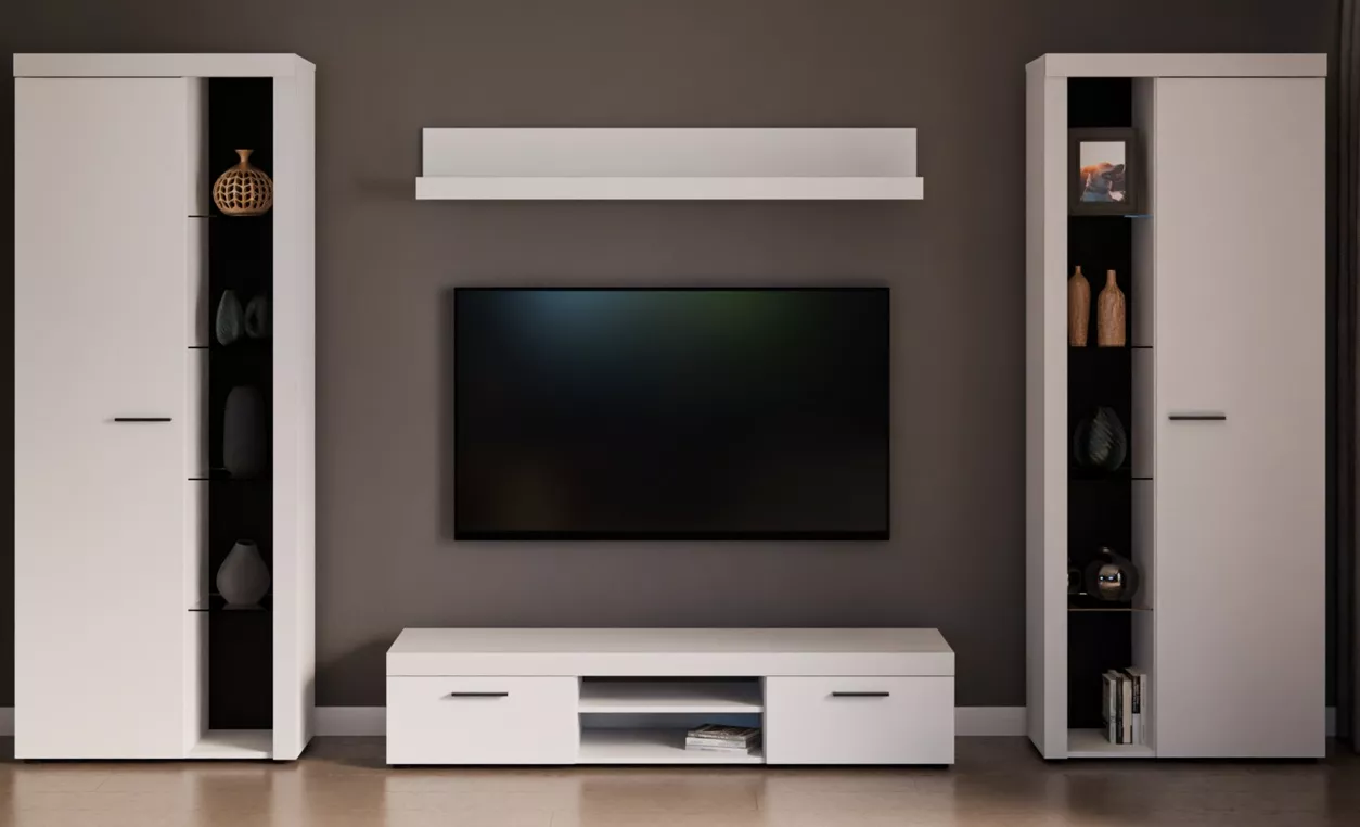 Cena je uvedena za bytovou stěnu vyobrazenou na úvodní fotografii, bez komod, doplňků a dekorací. LED osvětlení není v ceně sestavy.
