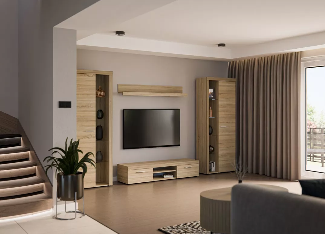 Obývací stěna Rizo XL je oblíbená sestava moderního nábytku, která nabízí dostatek úložného prostoru a přitom nepůsobí těžce. Díky šířce 300 cm vytvoří ucelenou TV zónu s místem na elektroniku, dekorace i věci, které chcete mít uklizené. Hodí se i do menších obývacích pokojů, kde je důležité využít prostor chytře a přehledně.
