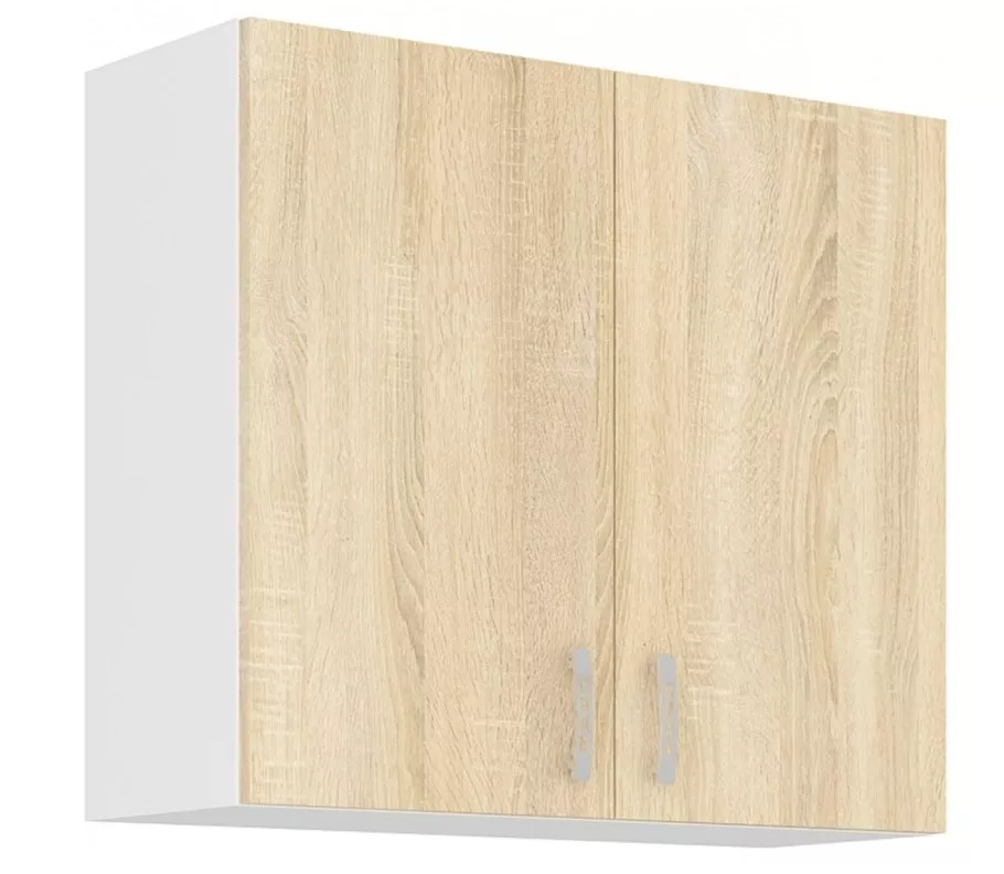 Horní kuchyňská skříňka Sally 80-g-72-2f je praktický základ pro kuchyňskou sestavu Sally a skvěle se hodí nad pracovní plochu. Bílý korpus z lamina o tloušťce 16 mm působí čistě a světle, zatímco dvířka v dekoru dub sonoma dodají kuchyni příjemně teplý, útulný vzhled. Díky šířce 80 cm nabízí dostatek místa na nádobí, potraviny i vše, co chcete mít uklizené a přehledně po ruce.
