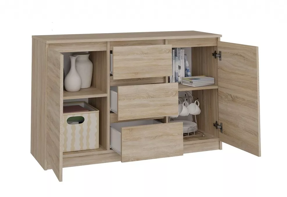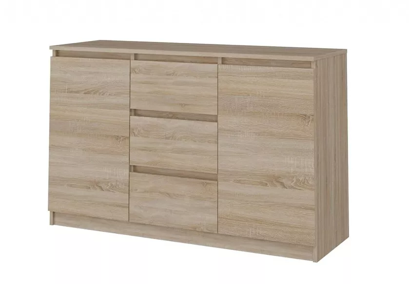 Komoda Malvína 2D3S je prostorná a zároveň elegantní komoda, která se hodí do obýváku, ložnice i předsíně. Šířka 120 cm nabízí velkorysý úložný prostor a díky kombinaci dvířek a zásuvek si věci snadno rozdělíte podle potřeby - do zásuvek drobnosti, za dvířka větší věci. Bezúchytková čela zásuvek a dvířka podtrhují moderní, čistý vzhled a zároveň se pohodlně používají.