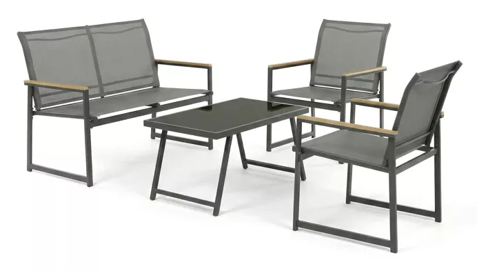 Zahradní set AZS-S1212 v šedém provedení spojuje pevnou kovovou konstrukci s pohodlným textilním potahem sedáků a opěradel, díky čemuž je ...