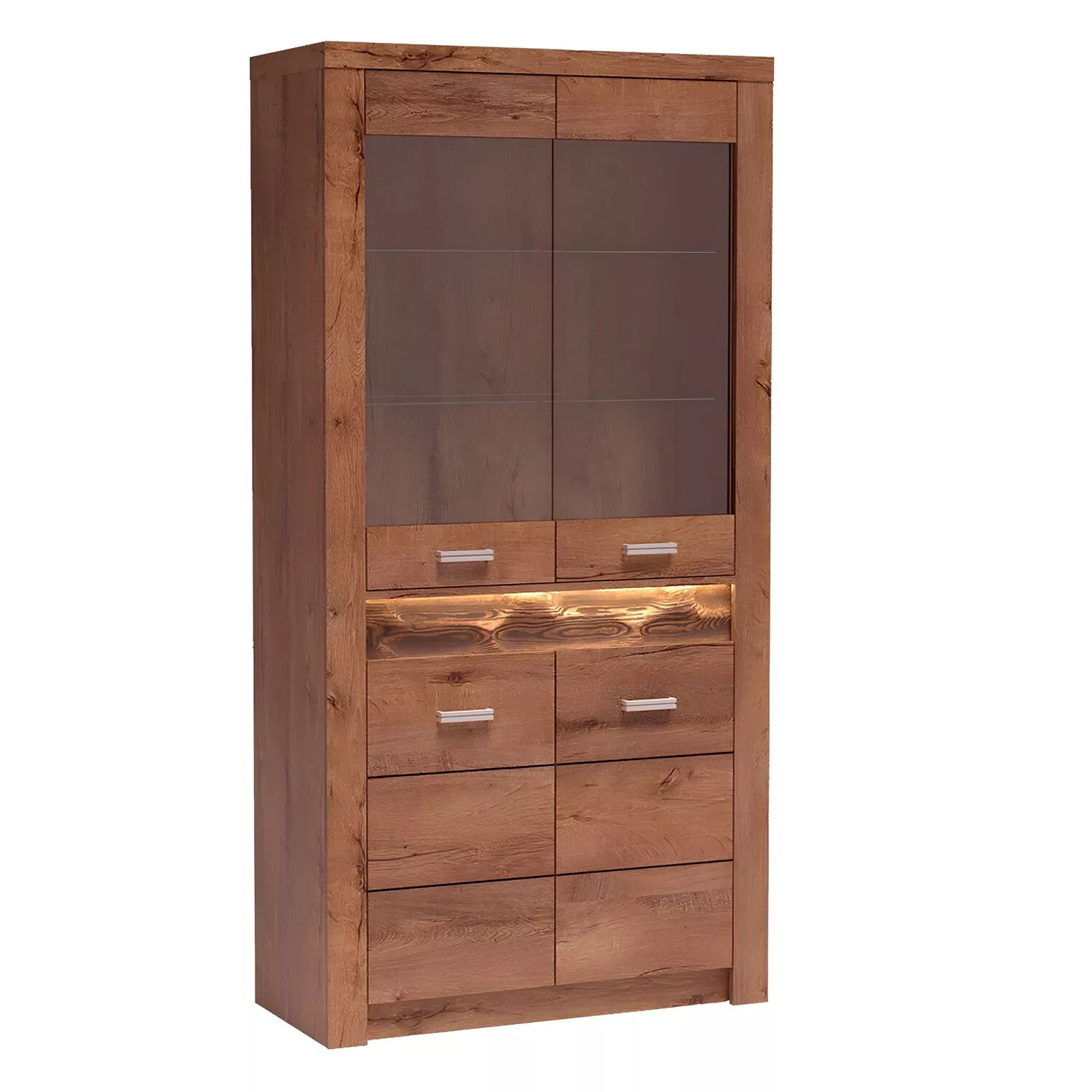 Prostorná vitrína INFINITY v dekoru jasan světlý je elegantním a praktickým doplňkem do obývacího pokoje nebo jídelny. Světlý dřevěný dekor ...