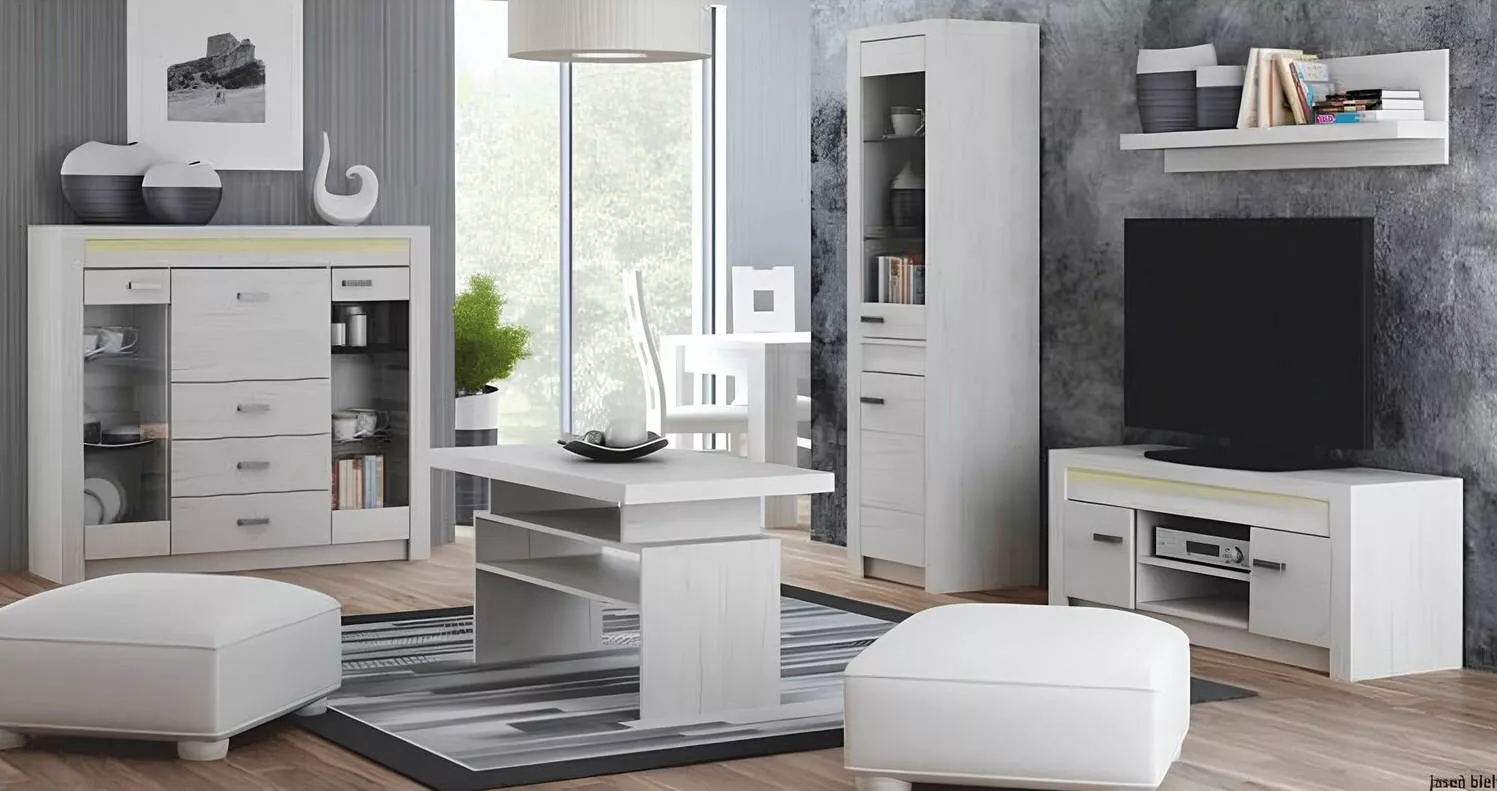 Prostorná vitrína INFINITY v dekoru jasan světlý je elegantním a praktickým doplňkem do obývacího pokoje nebo jídelny. Světlý dřevěný dekor působí přirozeně a vzdušně, díky čemuž snadno zapadne do moderních i nadčasových interiérů.