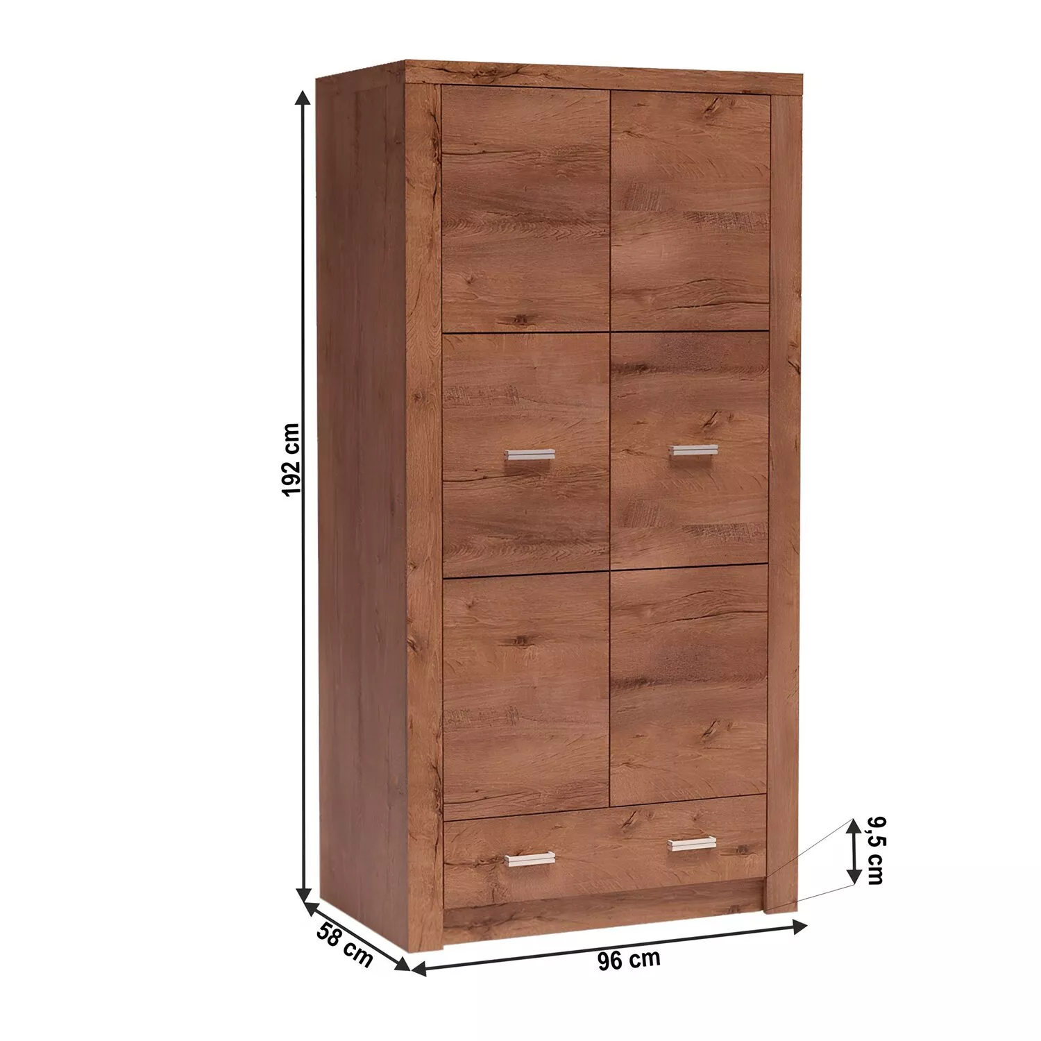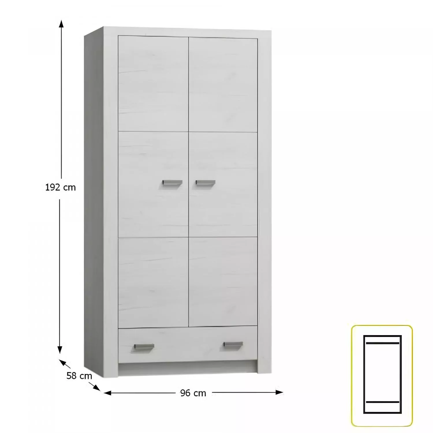 Dvoudveřové provedení nabízí optimální poměr mezi velikostí a úložným prostorem, takže skříň je vhodná i do menších místností.