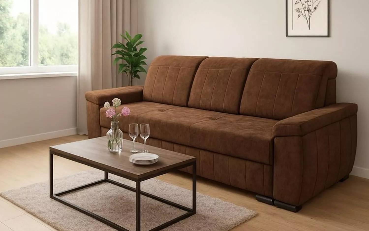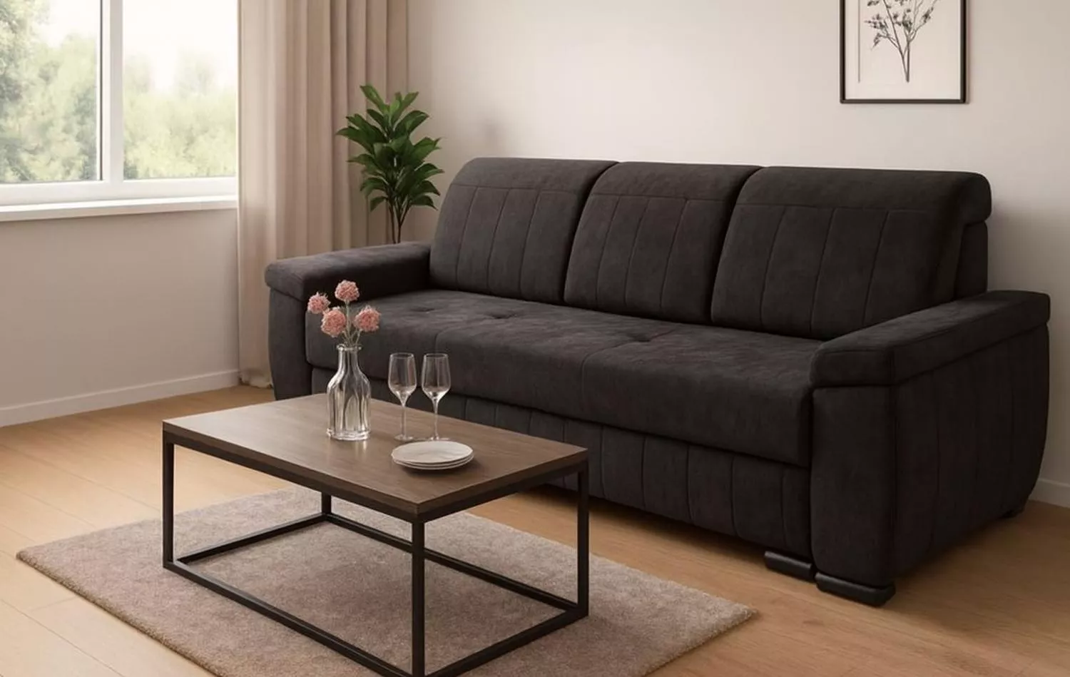 Součástí je i praktický úložný prostor, ideální na lůžkoviny, deky nebo polštáře. O pohodlí se stará kombinace vlnitých pružin, pružin bonell a kvalitní PUR pěny, takže pohovka nabízí příjemnou oporu a dobře drží tvar. Díky celočalouněnému provedení ji můžete postavit i volně do prostoru, nejen ke zdi. Skvěle se hodí do obývacího pokoje, pracovny nebo pokoje pro hosty a dostupná je v několika trendy barvách.