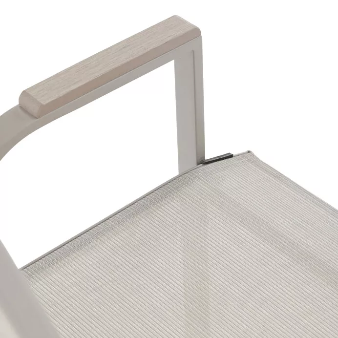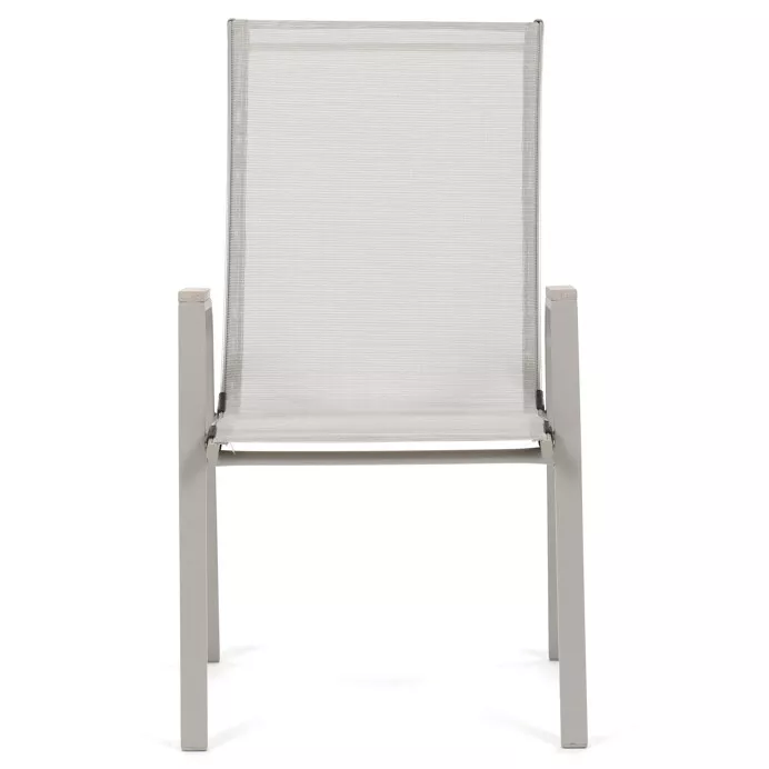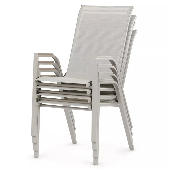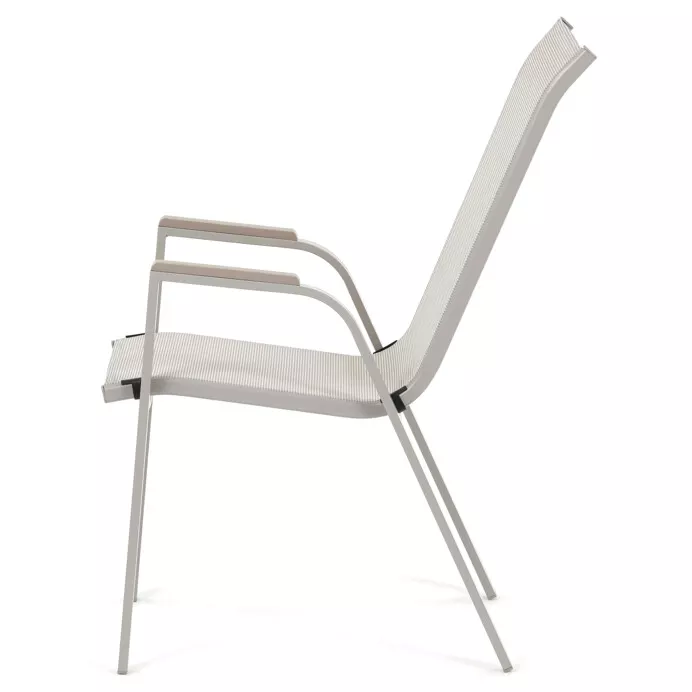 Sedák a opěradlo jsou vyrobeny z odolné síťoviny, která je příjemná na dotek a díky své prodyšnosti zajišťuje komfort i během teplých letních dnů. Materiál rychle schne a dobře odolává venkovním podmínkám, což oceníte při každodenním používání.