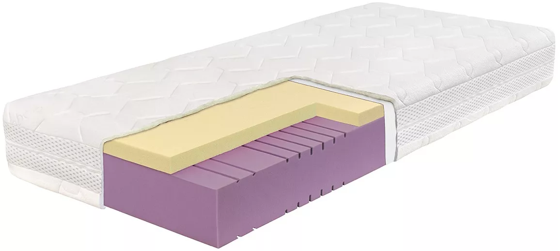 Jádro matrace tvoří kombinace hybridní pěny s vysokým odporem proti stlačení (50 kPa/40 %) a kvalitní studené HR pěny s vysokou objemovou hmotností.