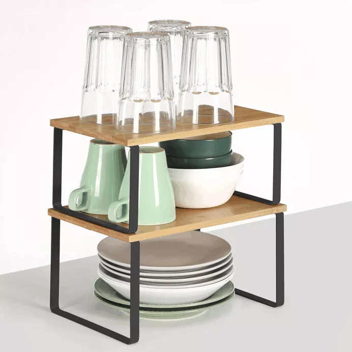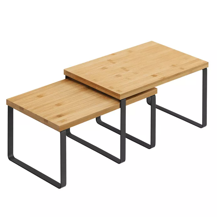 Bambusové police přinášejí do prostoru teplý přírodní akcent a jsou vhodné pro každodenní použití. Pevná kovová základna zajišťuje stabilitu a dlouhou životnost. Díky kompaktním rozměrům lze poličky snadno umístit na kuchyňskou linku, pracovní plochu, do spíže nebo třeba i do koupelny či pracovního koutku.