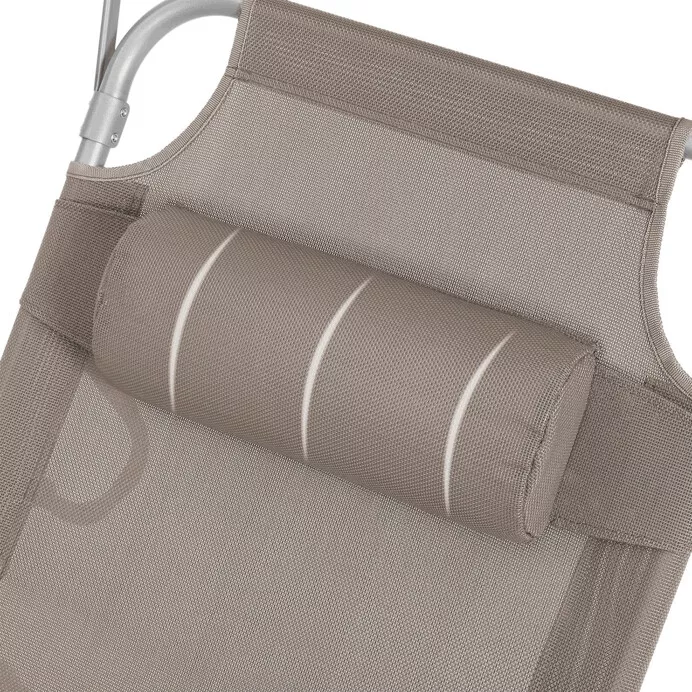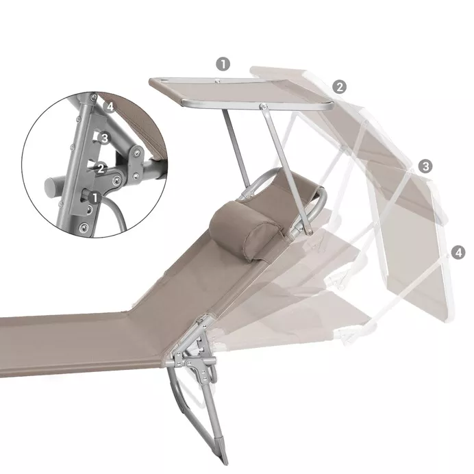Lehátko je vybaveno polohovatelnou opěrkou zad, takže si snadno nastavíte ideální polohu pro slunění, čtení nebo relaxaci. Velkou výhodou je praktická stříška, která chrání hlavu před přímým sluncem a zvyšuje komfort během horkých letních dnů. Moderní design a neutrální barevné provedení umožňují snadné kombinování s dalším zahradním nábytkem.