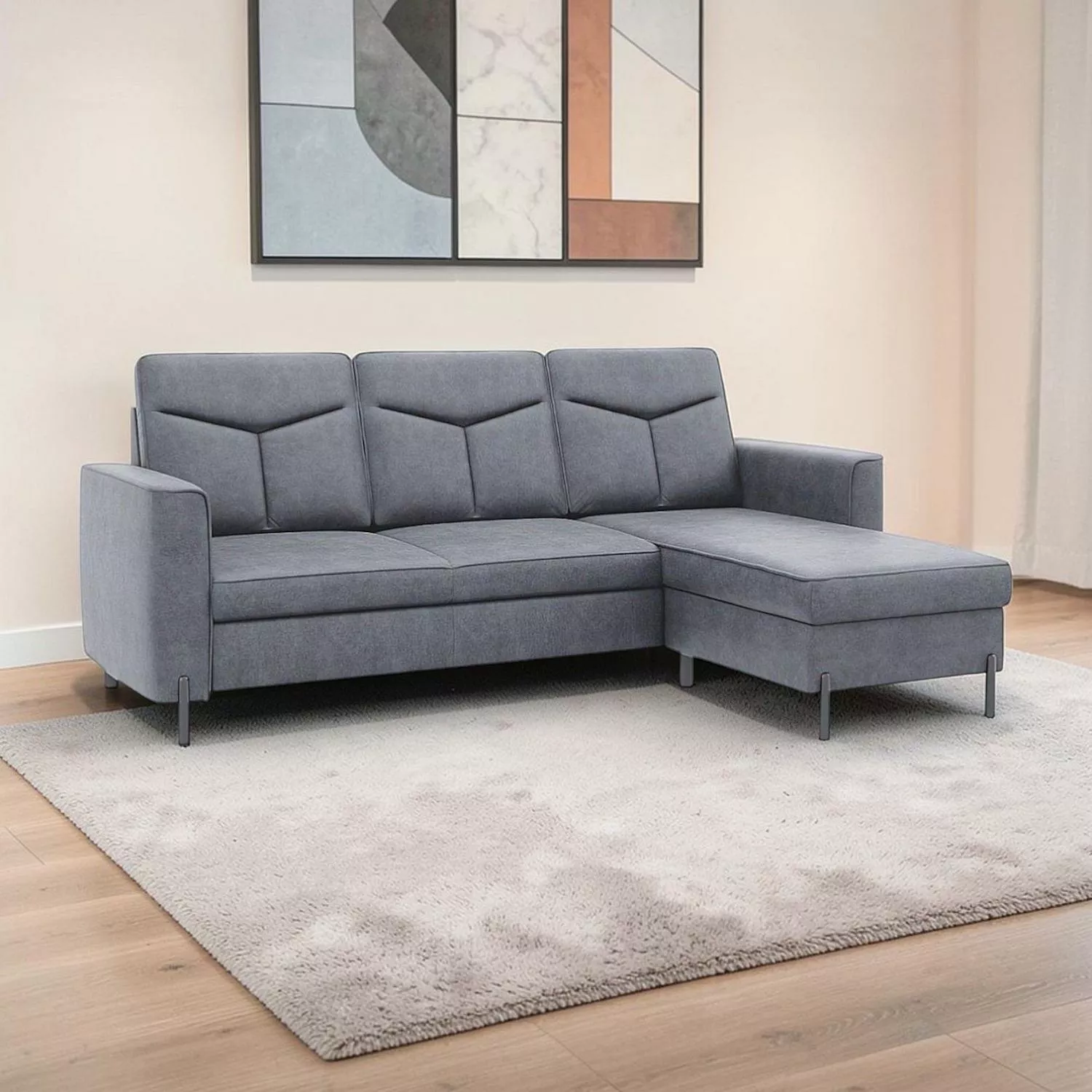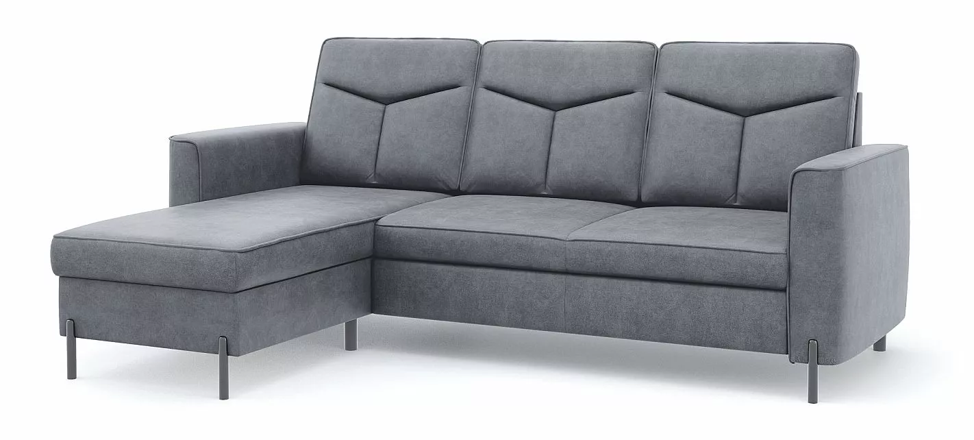 Díky možnosti volby levé nebo pravé varianty snadno přizpůsobíte sedací soupravu dispozici vašeho obývacího pokoje. Stabilitu a moderní vzhled podtrhují elegantní černé kovové nohy.