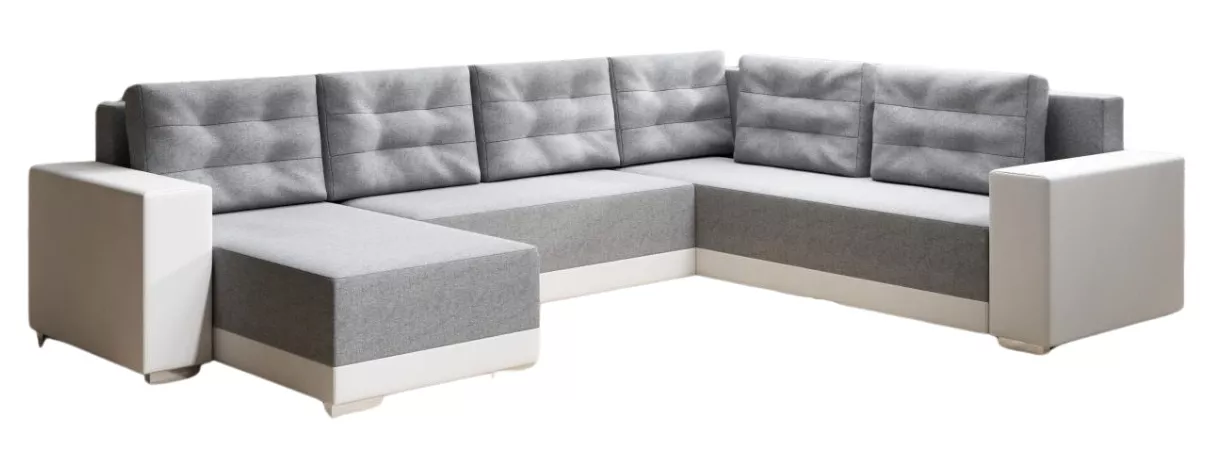 Sedací souprava Dafne U je ideální volba, pokud chcete opravdu velký prostor pro sezení a zároveň praktickou sedačku pro každodenní používání. Nadčasový design se snadno kombinuje s různými styly interiéru a univerzální provedení vám umožní při montáži zvolit levou nebo pravou stranu podle dispozice obývacího pokoje. Potah v kombinaci látky Malmo 90 a bílé ekokůže působí svěže a moderně.