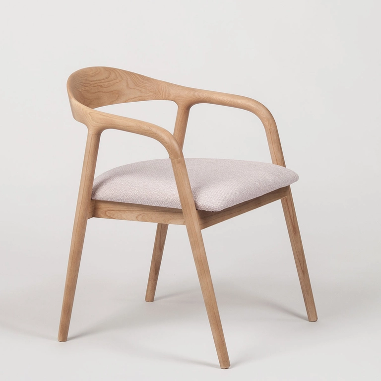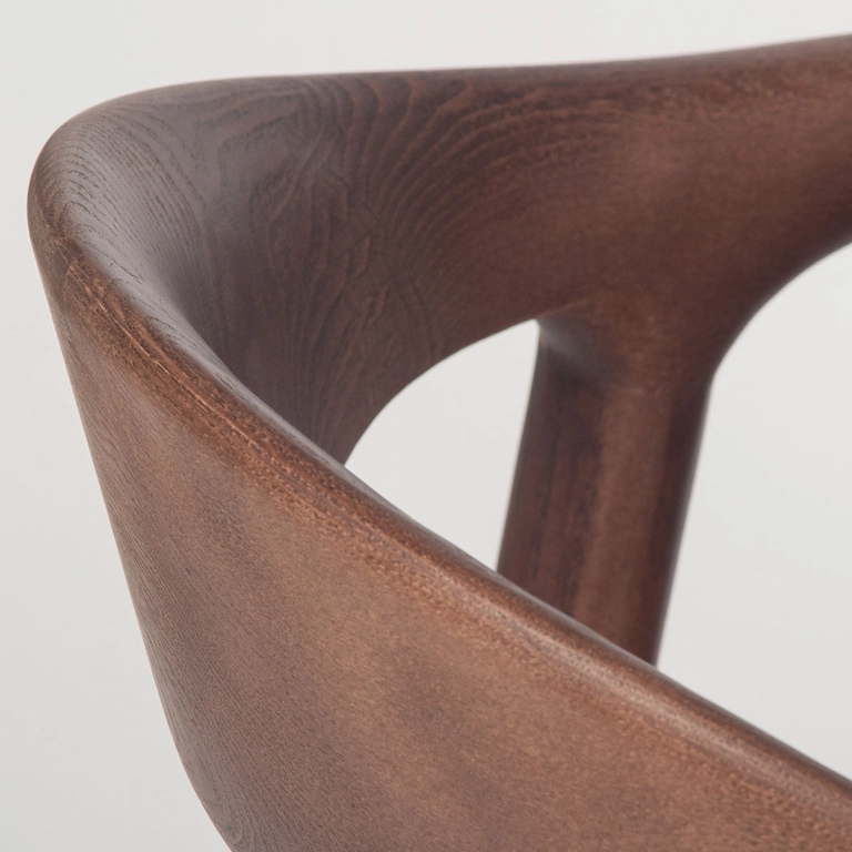 Masivní konstrukce zajišťuje vysokou stabilitu a dlouhou životnost při každodenním používání. Tvar sedáku a opěradla je navržen tak, aby poskytoval příjemnou oporu při sezení, zatímco područky zvyšují celkový komfort a dodávají křesílku hodnotnější charakter.