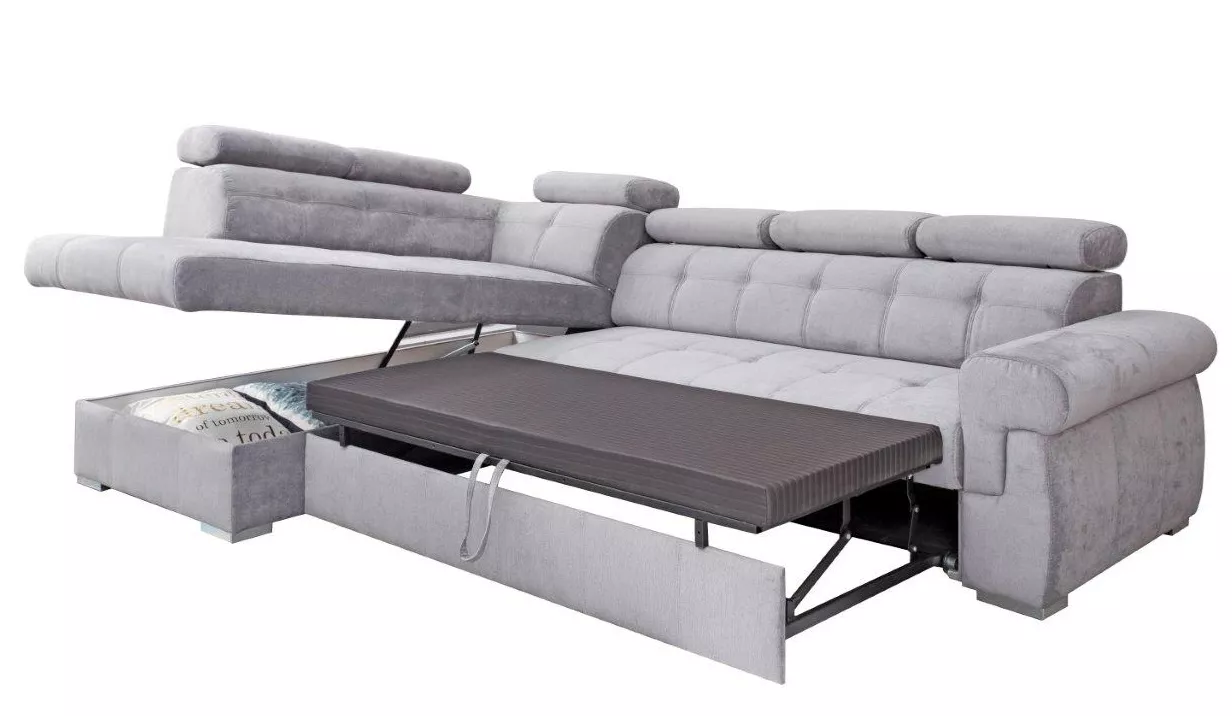 Praktickou výhodou je rozkládání pro občasné přespání návštěvy. Po rozložení vznikne lůžko o rozměru 126 × 215 cm. Nechybí ani objemný úložný prostor, ideální na lůžkoviny, deky nebo polštáře. Sedačka je dostupná v levém i pravém provedení, takže ji snadno přizpůsobíte dispozici obývacího pokoje.